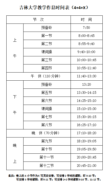 校內(nèi)各有關(guān)單位:????為更好的適應(yīng)學(xué)校教學(xué)工作發(fā)展需要,優(yōu)化學(xué)生課程安排,提高學(xué)習(xí)工作效率,經(jīng)學(xué)校2023年第17次校長辦公會審議通過,對我校教學(xué)作息時間做出調(diào)整。新教學(xué)作息時間自2024年春季學(xué)期開始執(zhí)行,請各單位遵照執(zhí)行并做好各項(xiàng)準(zhǔn)備工作。