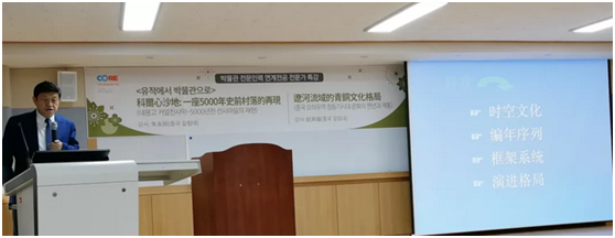 學術論壇召開之前,忠北大學校舉行了海外名家考古學講座,特邀朱永剛教授作了題為《科爾沁沙地——一座5000年史前村落的再現》的學術報告,詳細介紹了內蒙古哈民忙哈遺址的考古發(fā)掘以及博物館建設等情況;特邀趙賓福教授作了題為《遼河流域的青銅文化格局》的學術報告,系統(tǒng)介紹了青銅時代遼河流域的時空文化、編年序列、框架系統(tǒng)、演進格局。趙賓福教授還就遼河流域青銅文化的特征等問題,接受了韓國MBC電視臺的采訪。
