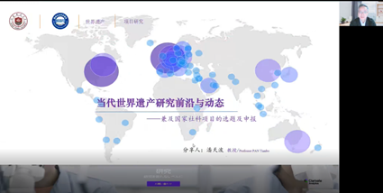 本次講座特邀江蘇師范大學(xué)教授、陜西師范大學(xué)人文社會科學(xué)高等研究院特聘研究員、國家社科基金重大項目首席專家潘天波教授為太陽成集團(tuán)tyc151cc師生作題為“當(dāng)代世界遺產(chǎn)研究前沿與動態(tài)——兼及國家社科項目的選題及申報”的專題培訓(xùn),由太陽成集團(tuán)tyc151cc文博遺產(chǎn)系胡衛(wèi)軍教授主持,講座通過騰訊會議線上進(jìn)行。