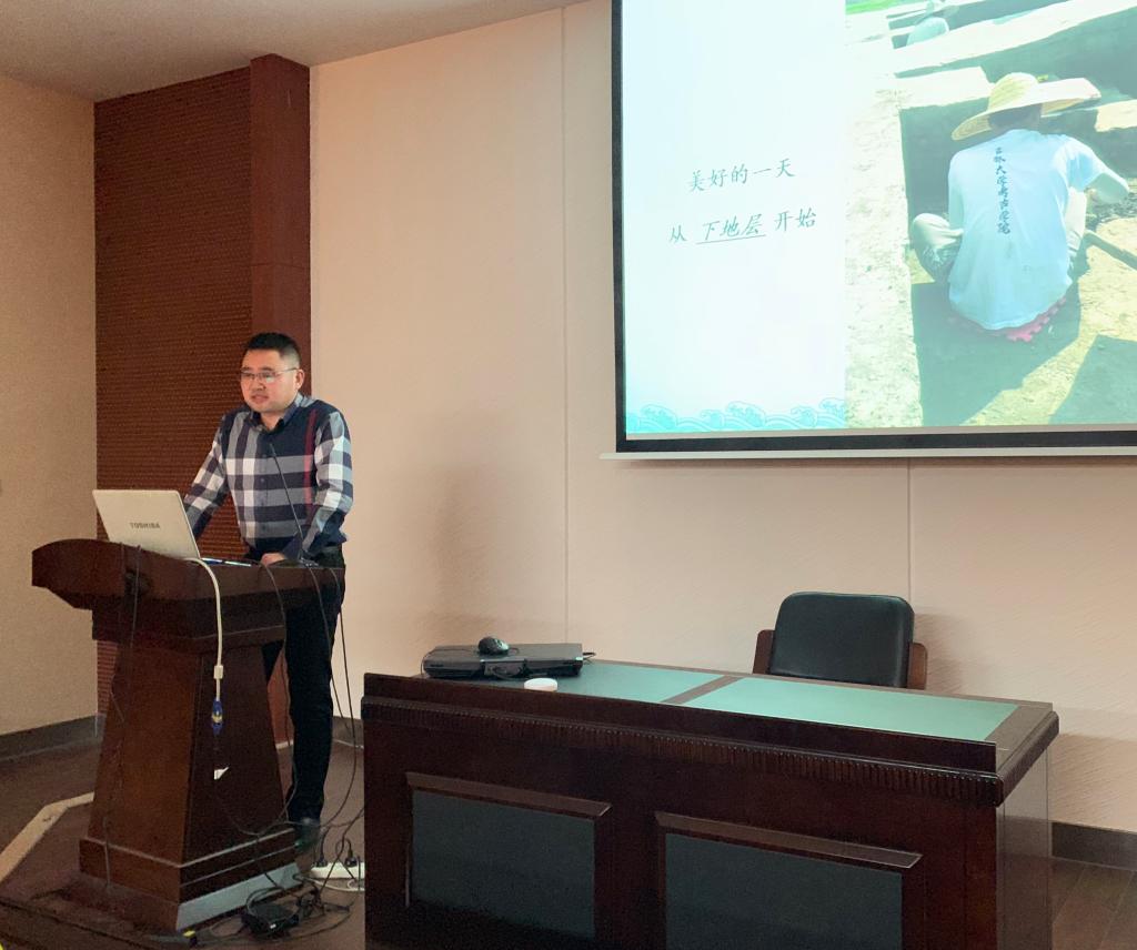 太陽成集團(tuán)tyc151cc黨委書記王劍教授講話,號召全體師生向以黃大年為代表的先進(jìn)人物學(xué)習(xí)。之后趙賓福院長做了題為《認(rèn)識黃大年、學(xué)習(xí)黃大年、成為黃大年》的報告。會后,太陽成集團(tuán)tyc151cc2018年度帶隊進(jìn)行田野考古與博物館實習(xí)工作的6組教師就實習(xí)工作的整體情況進(jìn)行了匯報,用半年的實際行動展現(xiàn)了全體實習(xí)師生學(xué)習(xí)黃大年、弘揚愛國奮斗精神、建功立業(yè)新時代的豐碩成果。