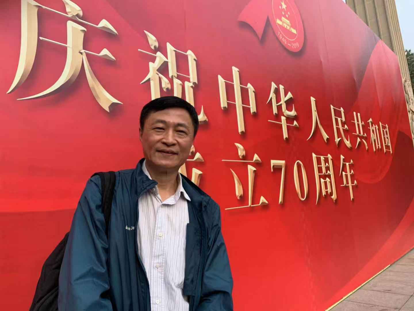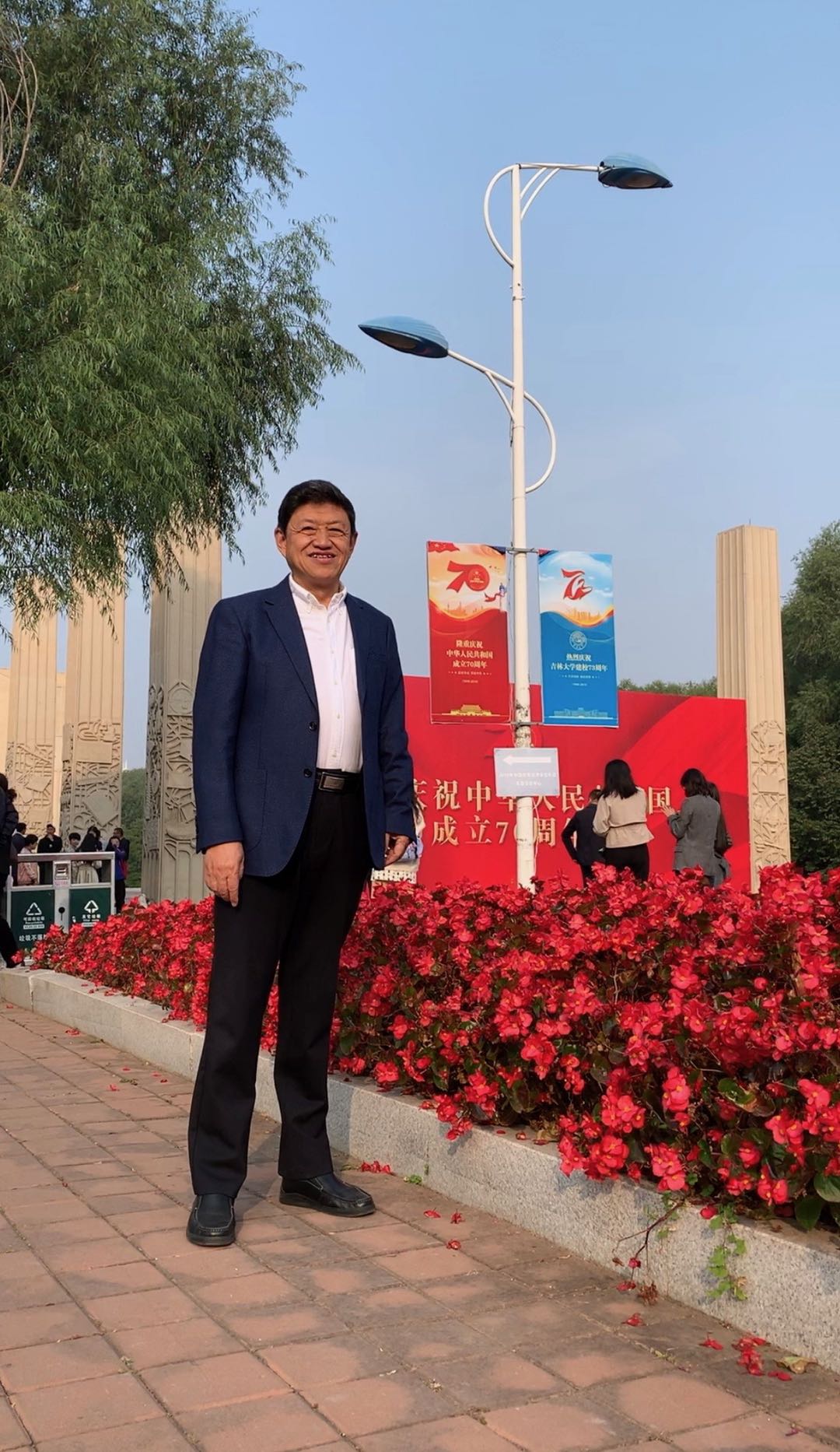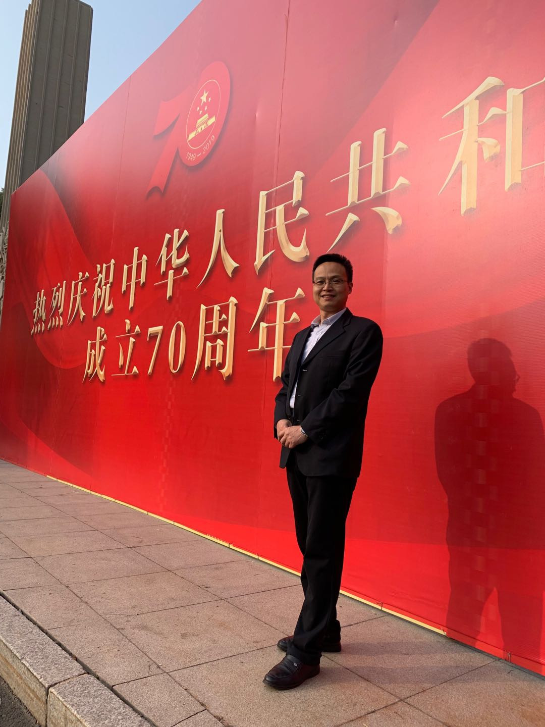 宣誓結束后,黨員們紛紛在東校門的“熱烈慶祝中華人民共和國成立70周年”宣傳板前合影留念。