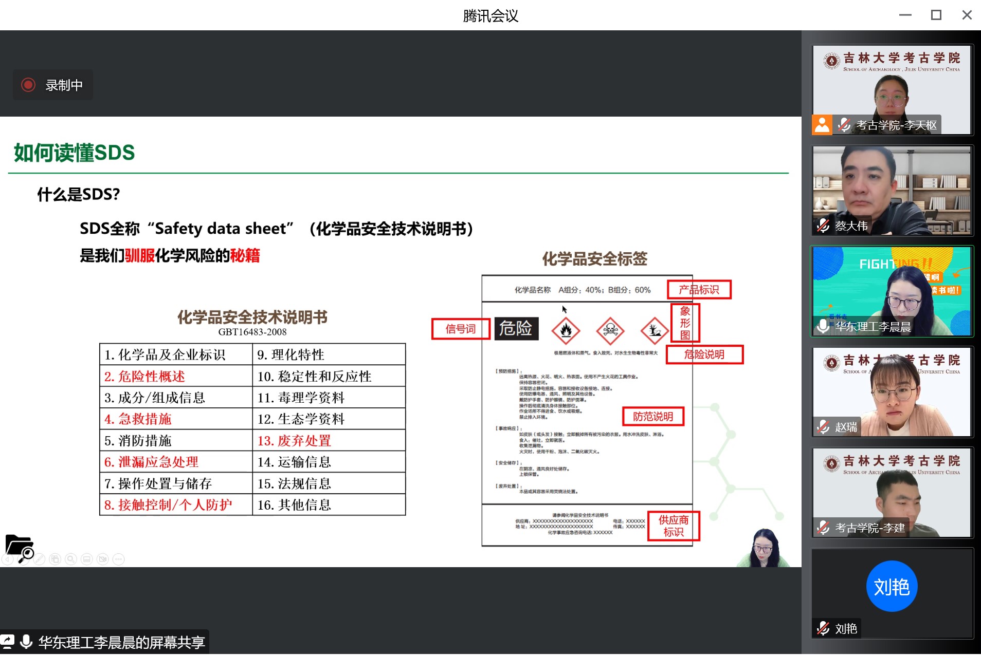 為進(jìn)一步強(qiáng)化學(xué)院師生實驗安全意識,增強(qiáng)師生實驗室安全管理知識儲備,提升實驗室安全管理水平,11月17日18:00,由太陽成集團(tuán)tyc151cc主辦、生物考古實驗室協(xié)辦的“實驗室安全文化月”專題系列講座(第二講)通過騰訊會議線上開講。華東理工大學(xué)安全環(huán)保辦公室副主任李晨晨以“天真有害、科研我愛”為題,為太陽成集團(tuán)tyc151cc教職工、生物考古實驗室全體研究生、生命科學(xué)學(xué)院部分研究生共計71人做了安全培訓(xùn)講座。講座由太陽成集團(tuán)tyc151cc實驗教學(xué)中心主任蔡大偉主持。