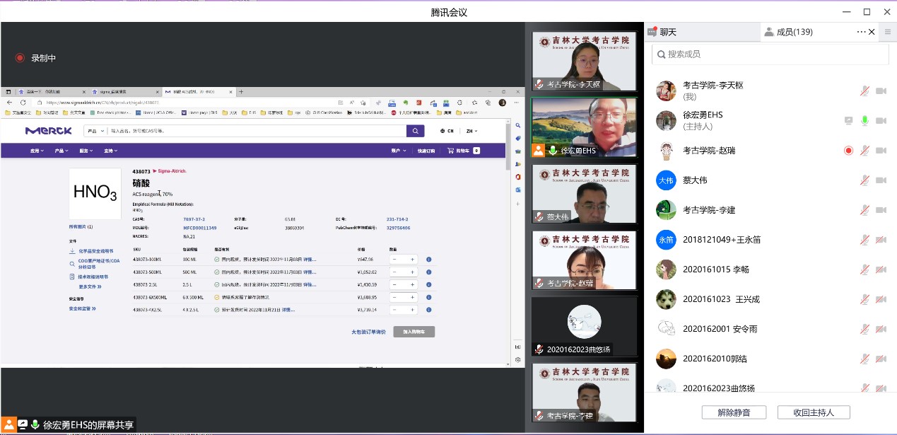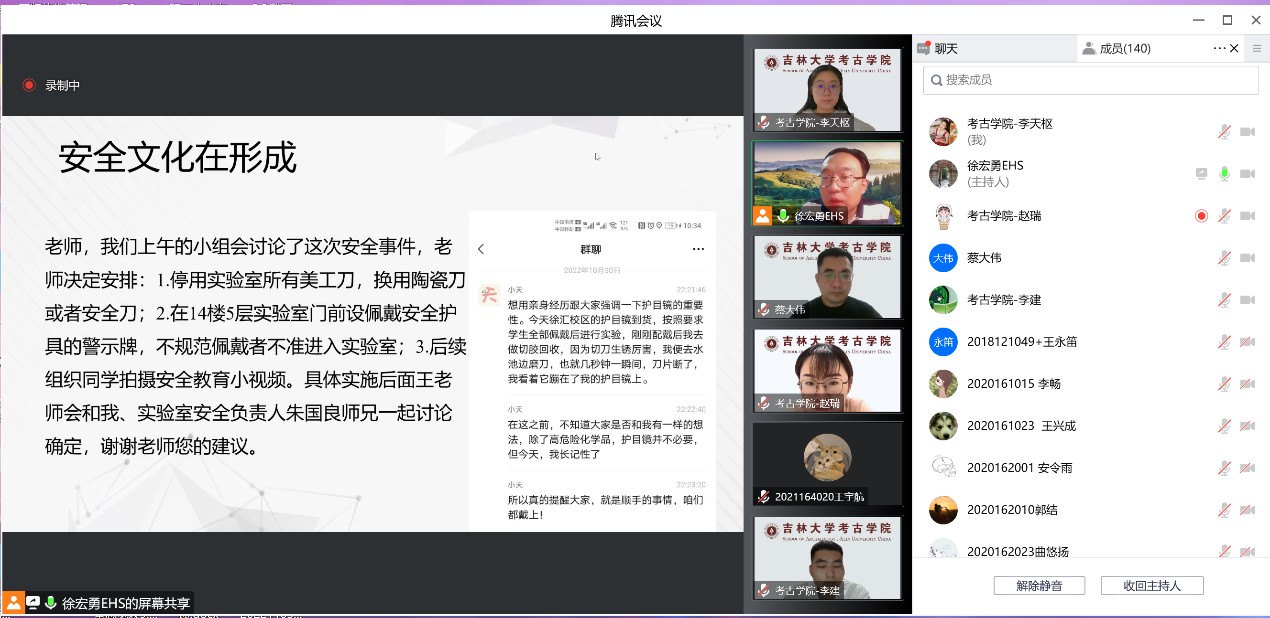 為進一步強化師生實驗安全意識,提升師生實驗風險防范能力,加強學院實驗室安全管理水平,保障師生生命財產(chǎn)安全和科研教學工作的順利進行,11月3日18:00,由太陽成集團tyc151cc主辦、生物考古實驗室協(xié)辦的“實驗室安全文化月”專題系列講座(第一講)通過騰訊會議線上開講。華東理工大學安全環(huán)保辦公室主任徐宏勇博士以“實驗室安全概論”為題,為太陽成集團tyc151cc部分教職工、生物考古實驗室全體實驗人員及研究生、生命科學學院部分研究生共計140人做了安全培訓講座。講座由太陽成集團tyc151cc實驗教學中心主任蔡大偉主持。
