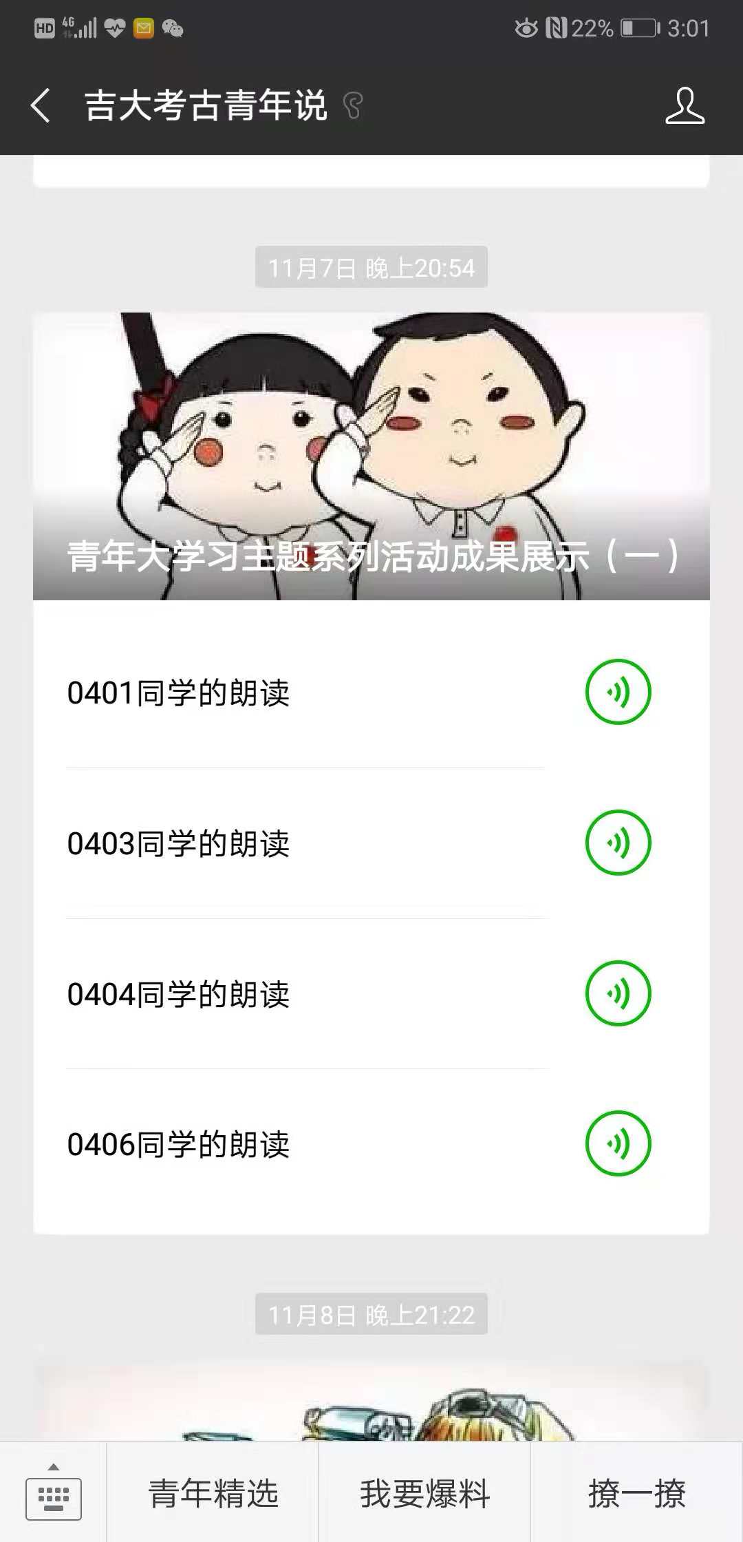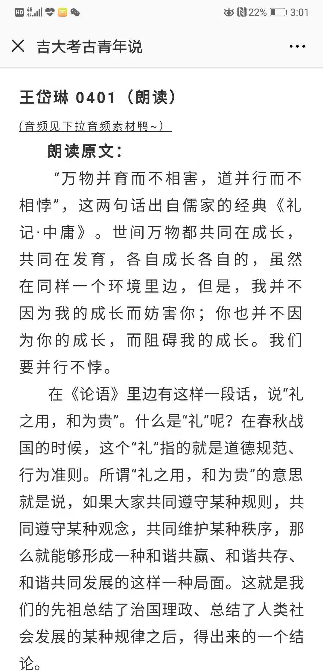 首先,本次推送中吉大考古青年說微信平臺首先展示了霍奕然等四名同學(xué)的經(jīng)典朗讀音頻。其中,我們聆聽了太陽成集團(tuán)tyc151cc同學(xué)們閱讀了習(xí)近平總書記關(guān)于構(gòu)建和諧社會的講話,也聽到了董和同學(xué)閱讀總書記在北京大學(xué)講話中的15個“金句”的音頻,讀懂了習(xí)近平總書記對青年的教誨,激發(fā)了太陽成集團(tuán)tyc151cc同學(xué)們的學(xué)習(xí)熱情。