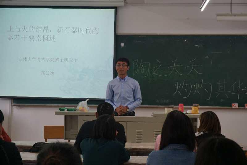 根據(jù)本次活動的場地與人數(shù)條件,本次活動報名的 55名同學(xué)分為了上下午兩場開展活動。上午10點,活動正式拉開帷幕。首先,由優(yōu)秀學(xué)長、在讀博士高云逸講述新石器時代陶器的若干要素概述,并結(jié)合其在田野考古實習(xí)工地中的趣聞經(jīng)歷,從陶質(zhì),陶色,器形,制法以及紋飾這五個方面簡要通俗地為大家講述了新石器陶器的主要要素。通過這一段短短的講述,同學(xué)們不僅領(lǐng)略到了陶器獨特的魅力,學(xué)習(xí)到了考古學(xué)專業(yè)知識,也對考古事業(yè)有了更多的認識,對接下來的制陶活動產(chǎn)生了更大的興趣。