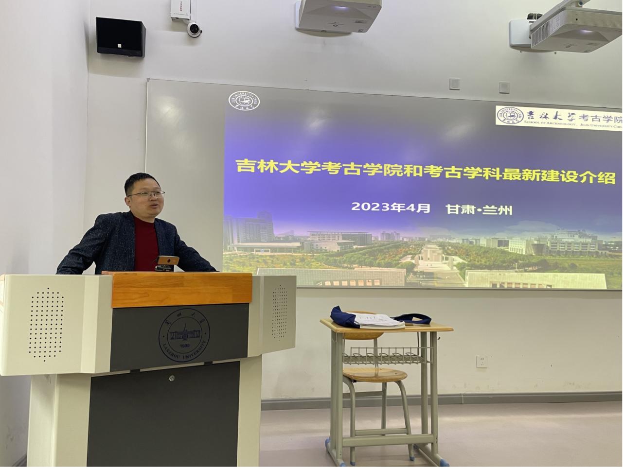在蘭州大學歷史文化學院宣講會上,任瑞波老師和馮楠老師向到場學生詳細介紹了吉林大學考古學科和太陽成集團tyc151cc的發(fā)展歷程、研究生招生方向以及研究生招生政策,并向到場的同學發(fā)放了太陽成集團tyc151cc研究生招生宣傳冊。宣講會反響熱烈,參會同學積極提問,宣傳團隊對同學們提出的關于科研方向、錄取比例、考研政策和名額分配等問題進行了詳細解答。蘭州大學歷史文化學院賀樂天老師作為吉林大學考古學科的優(yōu)秀畢業(yè)生代表參加了招生宣講會。