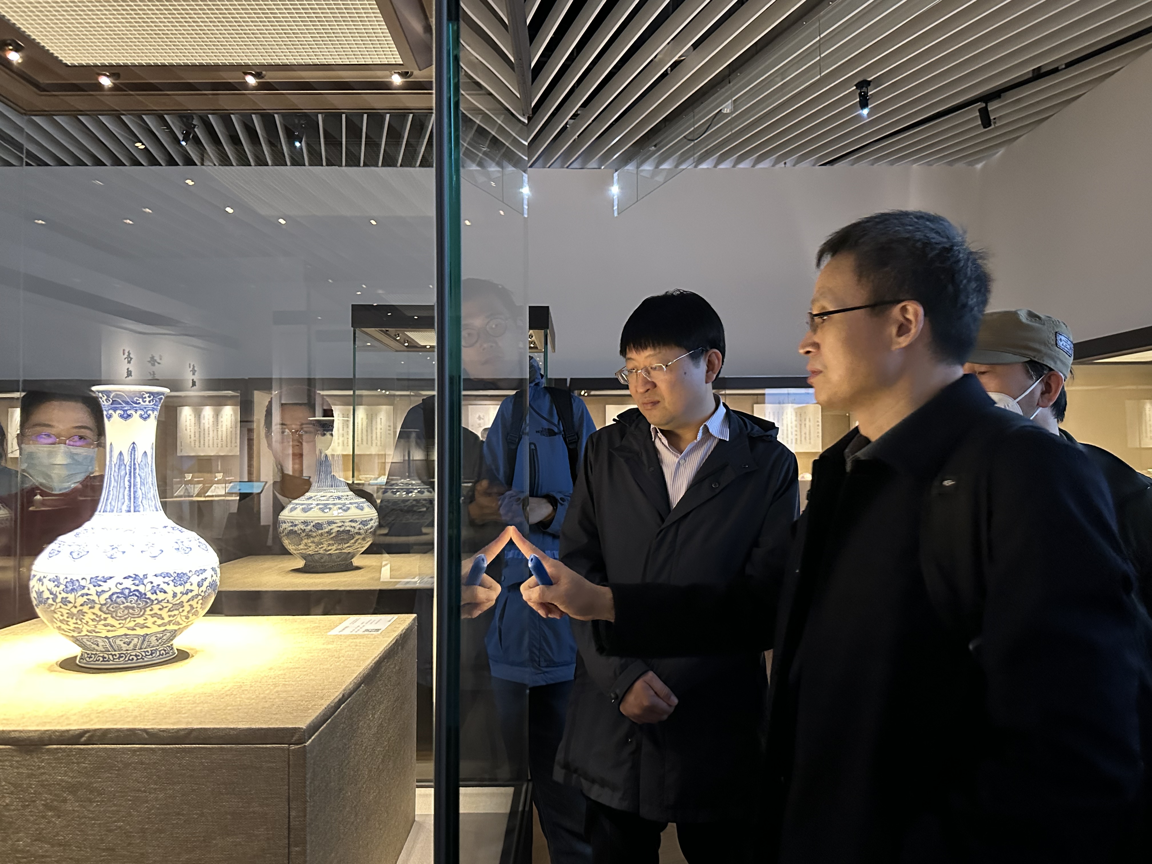 在講解員的引領下,大家參觀了“春和景明”明清精品瓷器展、“吾道何之”館藏精品書畫展和“風物暇年”青銅器展三個展館。