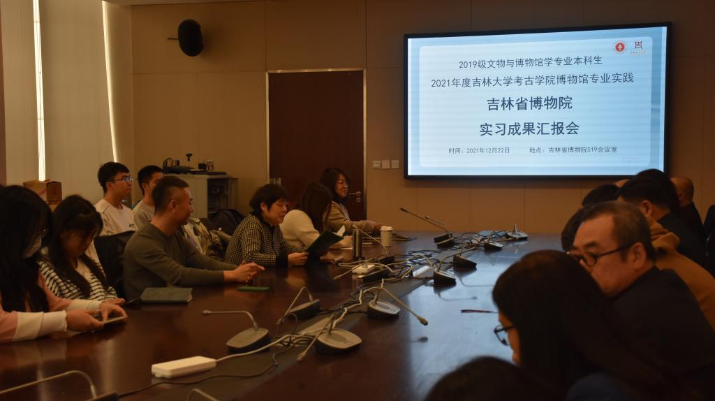 2021年12月22日上午,太陽成集團tyc151cc2021年度文博實習成果匯報座談會暨博物館專業(yè)實習總結大會在吉林省博物院五樓會議室舉行。太陽成集團tyc151cc文博遺產系呂軍、胡衛(wèi)軍、李亞利、張崢四位帶隊教師,2019級文博專業(yè)21名本科實習生,吉林省博物院李剛、錢進、李洪光等院領導以及公眾服務部、信息技術部、歷史部、抗聯(lián)史部、陳列藝術部、文創(chuàng)開發(fā)中心、院辦公室多位部室負責人出席了座談會。本次會議由實習負責人呂軍教授主持。