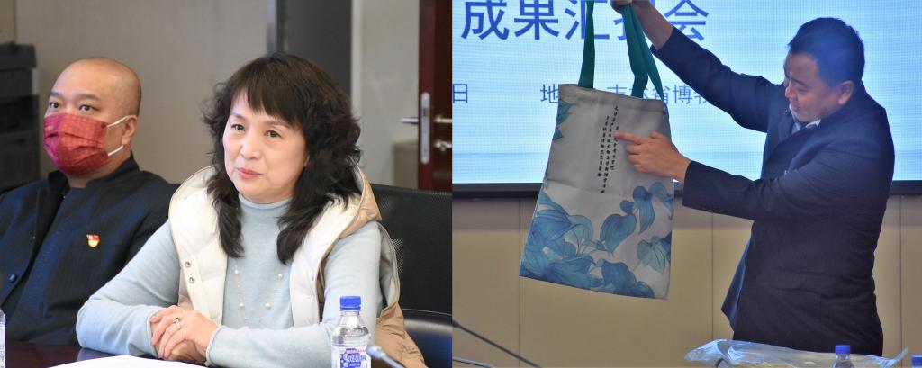 隨后,文創(chuàng)開發(fā)中心的楊貴峰主任向太陽成集團tyc151cc文博遺產系師生贈送本次實習期間的學生文創(chuàng)設計成果——張大千《擬宋徽宗照殿紅牡丹圖》帆布包,以及吉林省博物院的日歷與暖手寶,得到大家的熱烈歡迎。同時楊主任也表達了未來愿與吉大文博繼續(xù)在文創(chuàng)設計方面展開深入合作的暢想。