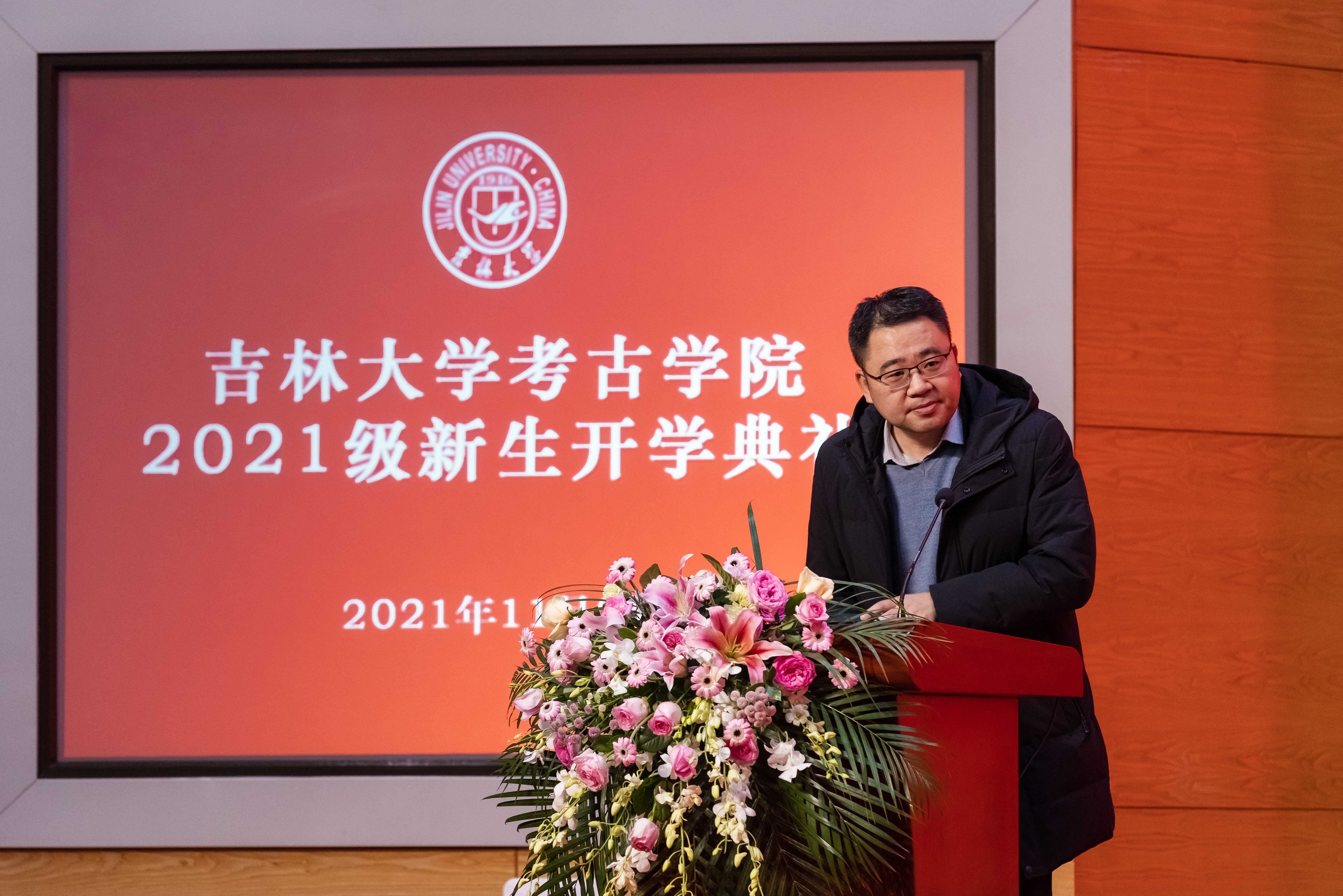 院長趙賓福教授為新生致辭。趙賓福教授指出,2021年是中國共產(chǎn)黨成立一百周年,也是中國現(xiàn)代考古學(xué)誕生一百周年,同學(xué)們要認真領(lǐng)悟黨的百年奮斗征程,感悟考古百年發(fā)展歷程,珍惜中國考古學(xué)新的時代機遇,利用好吉大考古學(xué)優(yōu)質(zhì)的學(xué)科平臺,努力學(xué)習(xí)專業(yè)知識,做到無愧時代。最后,趙院長向同學(xué)們表達了三點期望,希望同學(xué)們掌握為學(xué)之道、堅守為人之道、篤行修齊治平之道,認真思考個人成長成才的道路和責(zé)任與擔(dān)當(dāng),努力做到踏實研究、奮發(fā)向上,在與新時代同向同行的奮進征程中,綻放出絢麗的青春光彩。