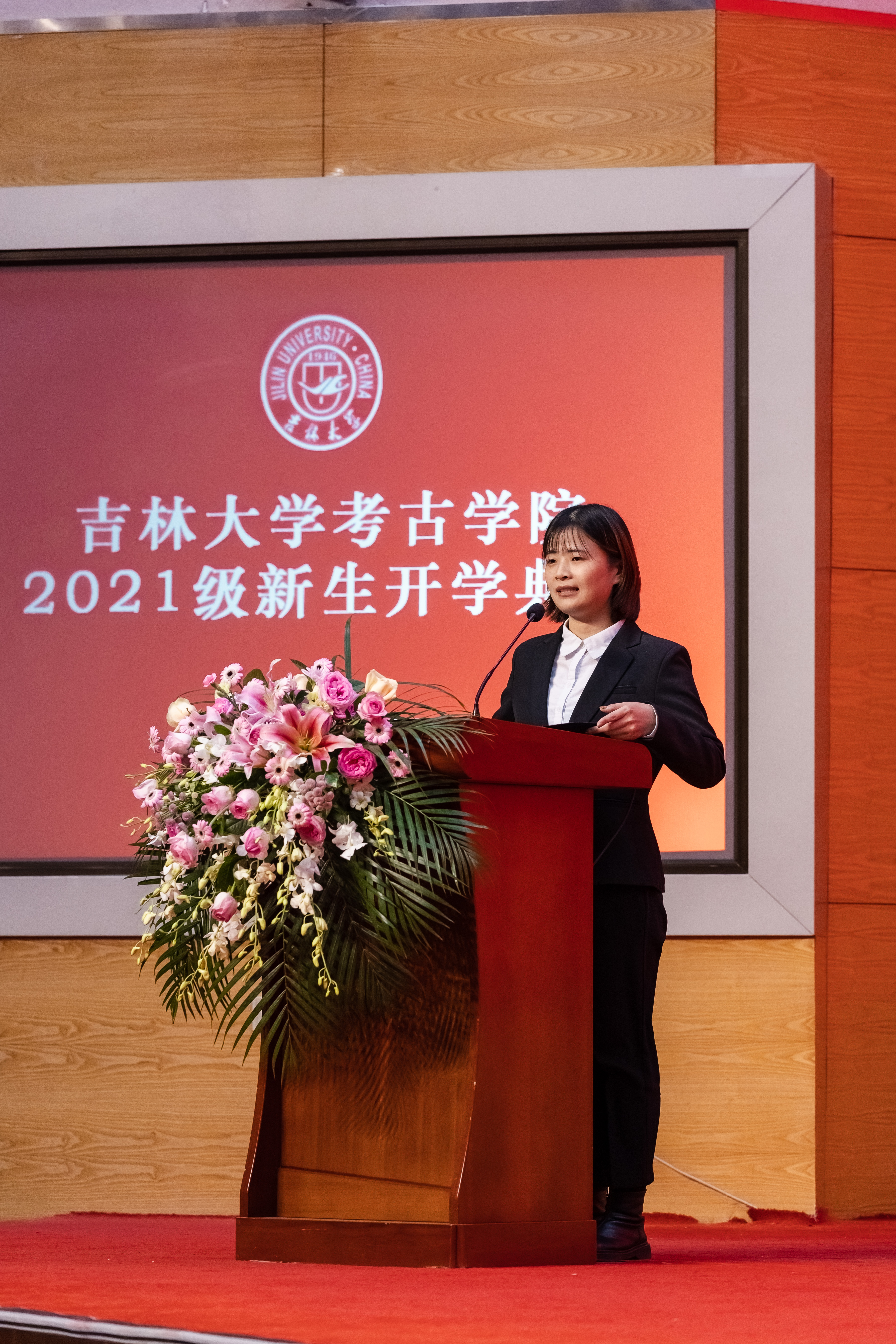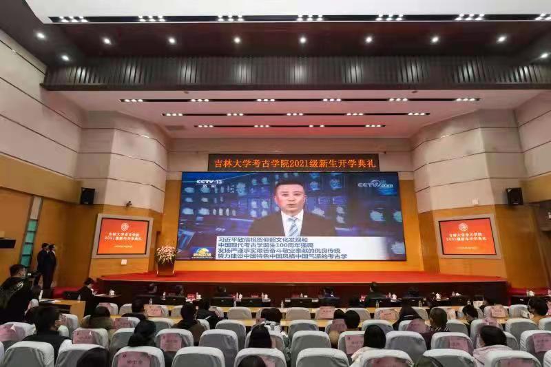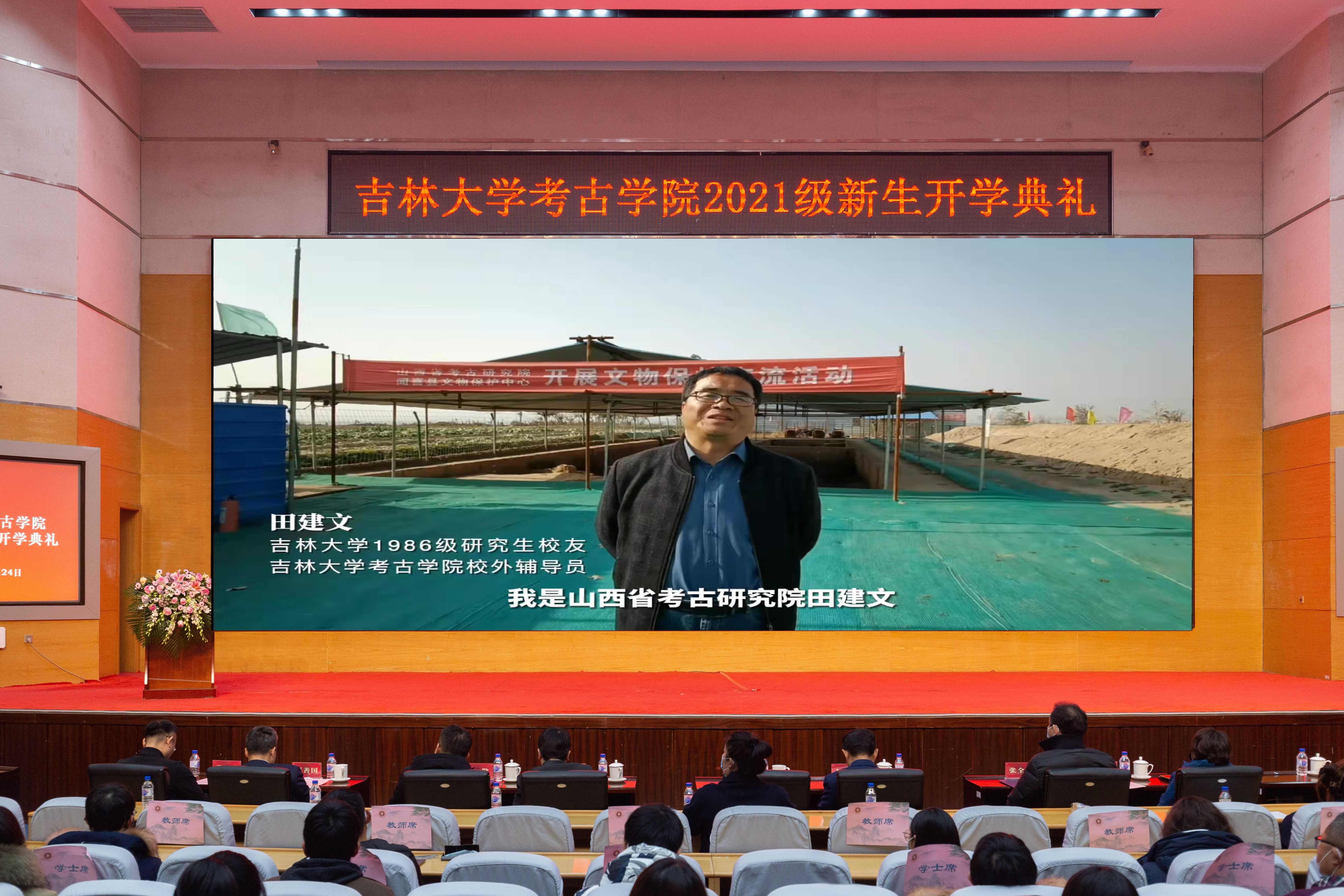 開學(xué)典禮在莊嚴的國歌聲中拉開序幕。大會首先播放的是校友寄語,35年前田建文研究員考取吉林大學(xué)考古專業(yè)研究生,師從考古學(xué)家張忠培先生。研究生畢業(yè)后,田建文放棄了留京的工作機會,回到山西扎根田野做考古,三十余年初心不改。此次新生開學(xué)典禮,田建文研究員以視頻的形式為新生送上祝福,講述了自己與吉大考古的情緣,表達了對新生的諄諄教誨與美好期許!