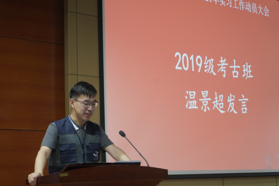 在接下來的學(xué)生代表發(fā)言環(huán)節(jié)中,2019級(jí)考古班代表溫景超、2019級(jí)文物與博物館班代表張靈江分別回顧了過去兩年的學(xué)習(xí)歷程,表達(dá)了迎接實(shí)踐教學(xué)檢驗(yàn)的期待與信心。