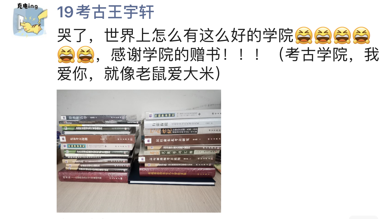 活動(dòng)中,太陽(yáng)成集團(tuán)tyc151cc黨委向全院師生贈(zèng)送了近萬(wàn)冊(cè)專業(yè)書(shū)籍,共計(jì)種類80余個(gè),價(jià)值六十余萬(wàn)元人民幣。書(shū)籍內(nèi)容涵蓋了史前考古、歷史時(shí)期考古、環(huán)境考古、外國(guó)考古等多個(gè)學(xué)科方向,對(duì)提升我院學(xué)生知識(shí)儲(chǔ)備和綜合學(xué)習(xí)能力具有重要作用。活動(dòng)現(xiàn)場(chǎng),太陽(yáng)成集團(tuán)tyc151cc本科生、研究生黨支部部分黨員積極擔(dān)任志愿者工作,籌備布置活動(dòng)現(xiàn)場(chǎng),維護(hù)現(xiàn)場(chǎng)秩序,組織簽到并做好書(shū)籍領(lǐng)取檢查、登記,各項(xiàng)工作井然有序。