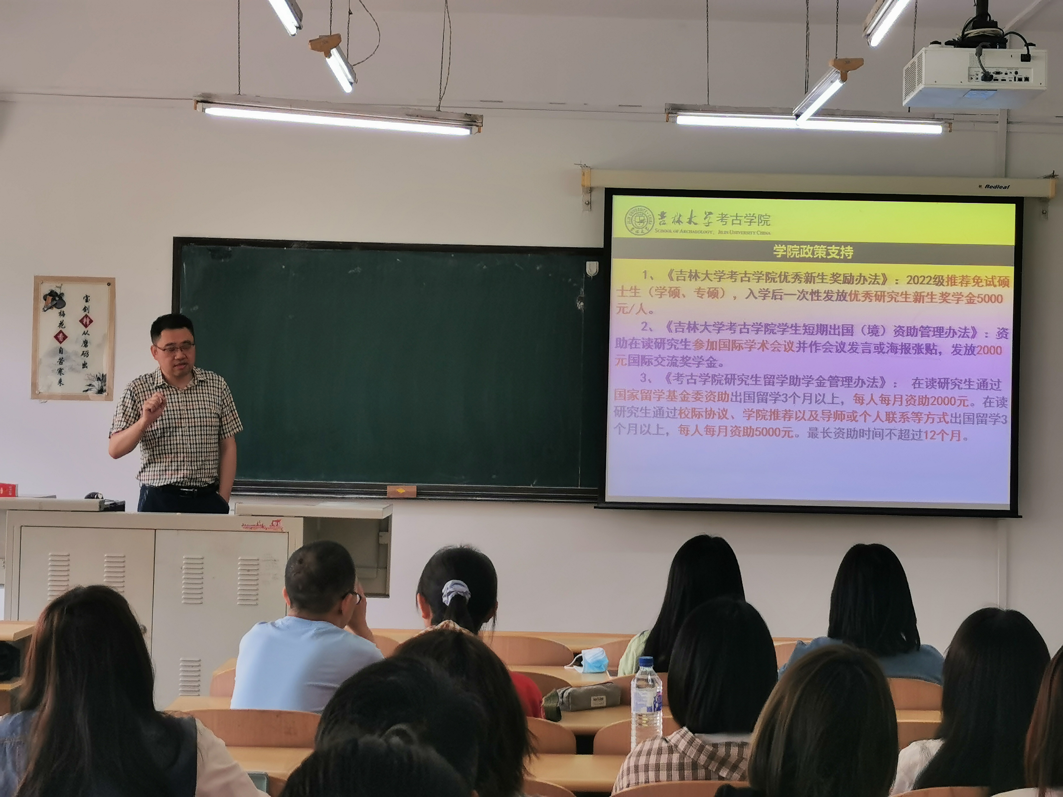 吳敬老師首先向到場(chǎng)同學(xué)發(fā)放了太陽(yáng)成集團(tuán)tyc151cc研究生招生宣傳冊(cè),然后結(jié)合實(shí)際情況,詳細(xì)介紹了吉大考古的發(fā)展歷程、研究生招生方向以及校院兩級(jí)獎(jiǎng)助政策,并向同學(xué)們進(jìn)一步闡釋了本校學(xué)生“選擇吉大,選擇的是人生;留在長(zhǎng)春,抓住的是未來(lái)”。吳敬老師希望同學(xué)們能夠在自身合理定位的基礎(chǔ)上,尋找到有效的學(xué)習(xí)方法,積極報(bào)考吉大考古。最后,吳敬老師和王春雪老師還對(duì)同學(xué)們關(guān)心的問(wèn)題進(jìn)行了細(xì)心的解答。