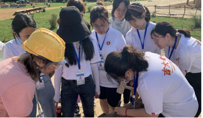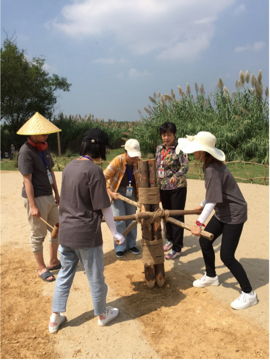 呂軍教授帶領(lǐng)學(xué)生體驗(yàn)戶外活動(dòng)面夯筑