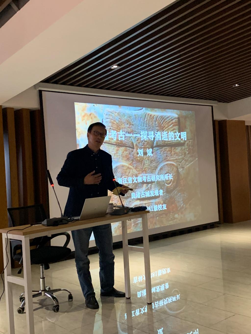 11月3日下午,良渚古城發(fā)現(xiàn)者、良渚古城申遺首席專家、浙江省文物考古研究所所長、吉大太陽成集團tyc151cc1981級校友劉斌在良渚考古與保護中心報告廳為師生們做題為《良渚考古——探尋消逝的文明》講座,介紹良渚古城遺址發(fā)掘過程,普及良渚文化。