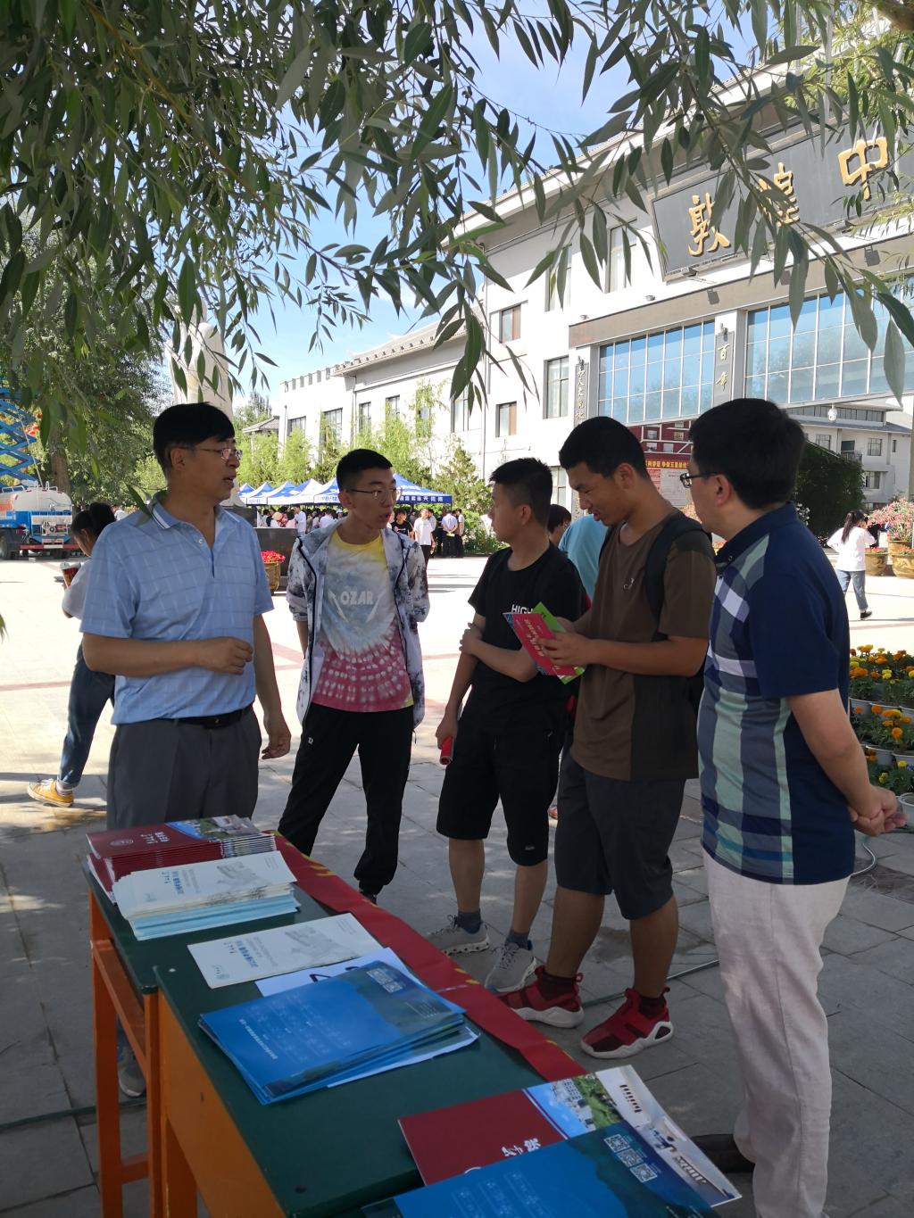 在蘭州大學(xué)校園開放日,宣傳組熱情接待前來(lái)咨詢的考生及家長(zhǎng),對(duì)我校的基本情況、優(yōu)勢(shì)學(xué)科、人才培養(yǎng)、國(guó)際交流、學(xué)生就業(yè)等情況進(jìn)行了詳細(xì)介紹。并就考生及家長(zhǎng)關(guān)心的一流學(xué)科建設(shè)、新生入學(xué)獎(jiǎng)學(xué)金政策、校內(nèi)轉(zhuǎn)專業(yè)、繼續(xù)深造等問(wèn)題進(jìn)行了詳細(xì)解答。現(xiàn)場(chǎng)咨詢踴躍、氣氛熱烈。宣傳組工作得到了蘭州大學(xué)校領(lǐng)導(dǎo)的親切肯定,并合影留念。在敦煌一中,恰逢高考填報(bào)志愿前夕,宣傳組與校園內(nèi)師生熱烈交談,詳細(xì)介紹了吉林大學(xué)的基本情況,面向報(bào)考學(xué)生進(jìn)行了宣傳講解并進(jìn)行了答疑交流。向敦煌一中授予了“吉林大學(xué)優(yōu)秀生源基地”牌匾。