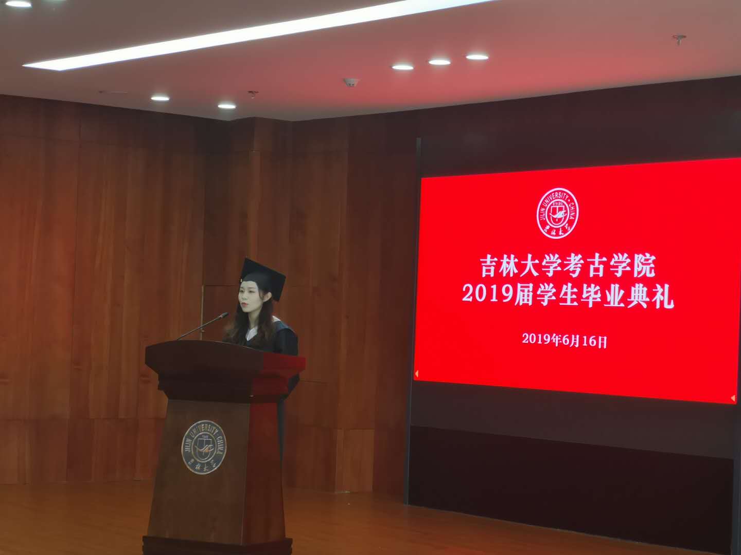 2015級(jí)考古班李萌同學(xué)作為本科畢業(yè)生代表發(fā)言,她在感恩母校的同時(shí)以時(shí)間為軸,結(jié)合自身經(jīng)歷,用細(xì)膩溫柔的語(yǔ)言回憶了4年美好校園生活的點(diǎn)滴;吉林大學(xué)2019年度“十佳研究生”獲得者張力月同學(xué)代表研究生感謝學(xué)院老師的悉心教導(dǎo),介紹了自己報(bào)效祖國(guó),支邊西部基層的感人經(jīng)歷,并針對(duì)學(xué)科特點(diǎn)和全體畢業(yè)生分享了在實(shí)踐中不斷積累經(jīng)驗(yàn)的心得體會(huì)。