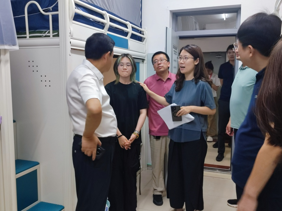 學(xué)院領(lǐng)導(dǎo)老師逐一走訪新生寢室,仔細(xì)詢問同學(xué)們的籍貫、專業(yè)以及對學(xué)校住宿、食堂等方面的初體驗(yàn),了解新生對宿舍和校園環(huán)境的適應(yīng)情況,認(rèn)真傾聽新生在專業(yè)選擇上的想法,耐心解答關(guān)于校園生活學(xué)習(xí)等方面的疑問。并叮囑同學(xué)們要盡快融入新的環(huán)境,與室友之間相互包容、相互照顧、互相學(xué)習(xí),共同營造溫馨和諧的宿舍文化。