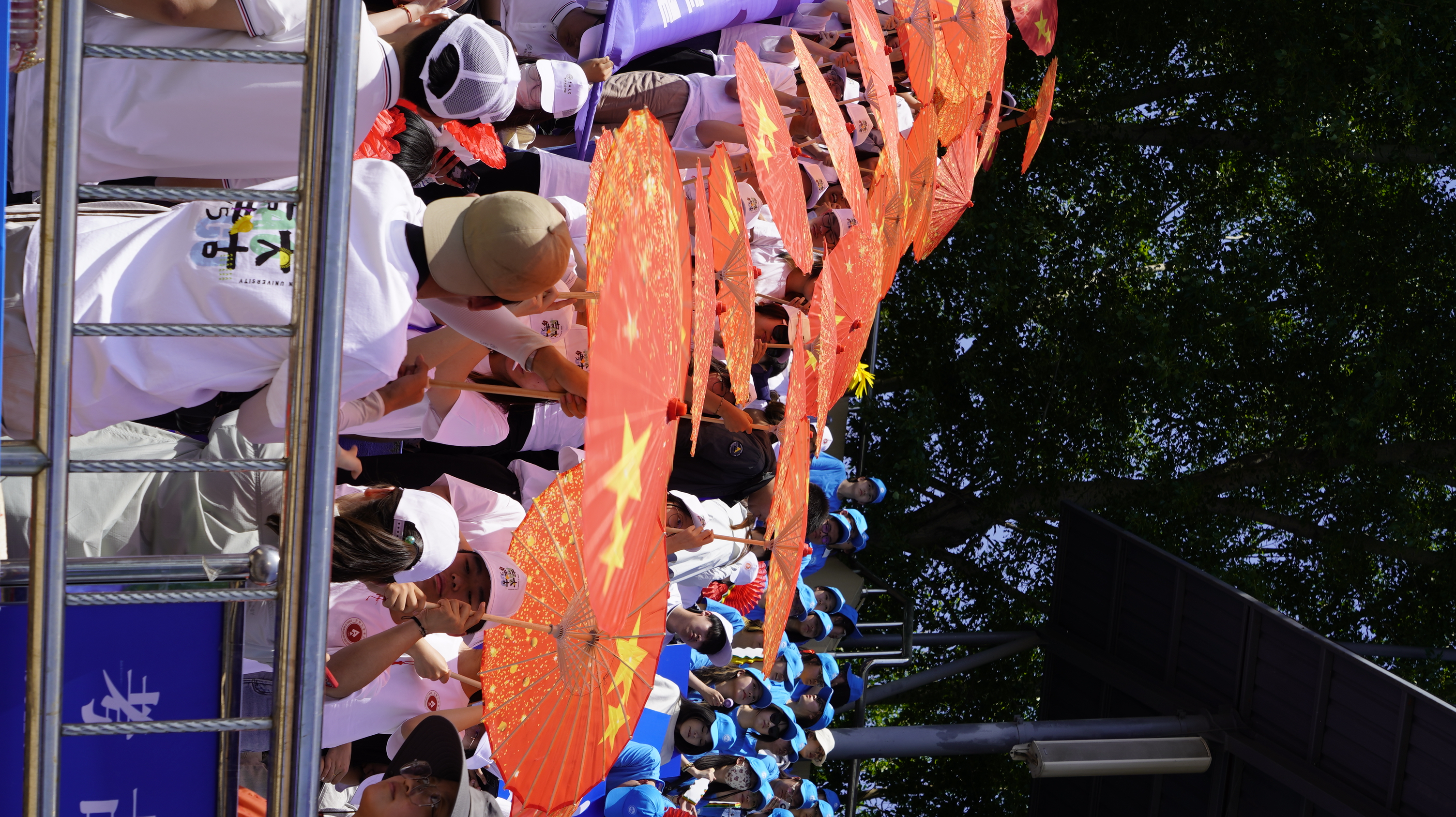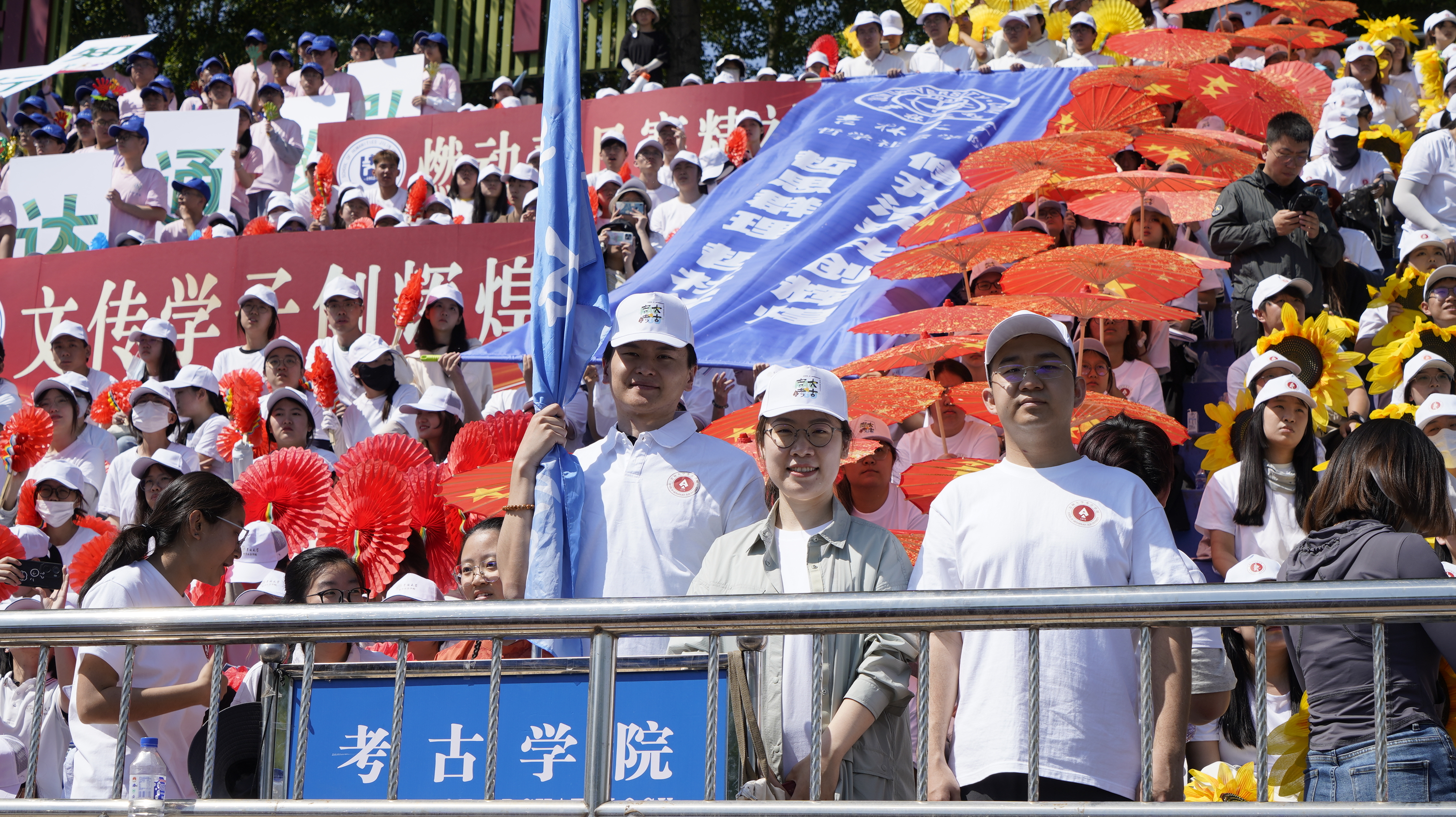 看臺之上,太陽成集團tyc151cc的學子們匯聚著青春的力量,積蓄著激昂的氣勢,為賽場上的健兒們吶喊助威,煥發(fā)著青春的勃勃生機。他們身著印有太陽成集團tyc151cc獨特logo的文化衫,手握鮮艷如火的紅油紙傘,隨著鼓點的節(jié)奏,在微風中輕盈地撐起、優(yōu)雅地旋轉(zhuǎn)、搖曳生姿、利落收束,展現(xiàn)出磅礴大氣、威武不凡的風采。每一個動作都如行云流水般自然流暢,每一句口號都如穿云裂石般鏗鏘有力、激蕩人心,盡顯考古學子們默契協(xié)作的團隊精神與磐石般的凝聚力。