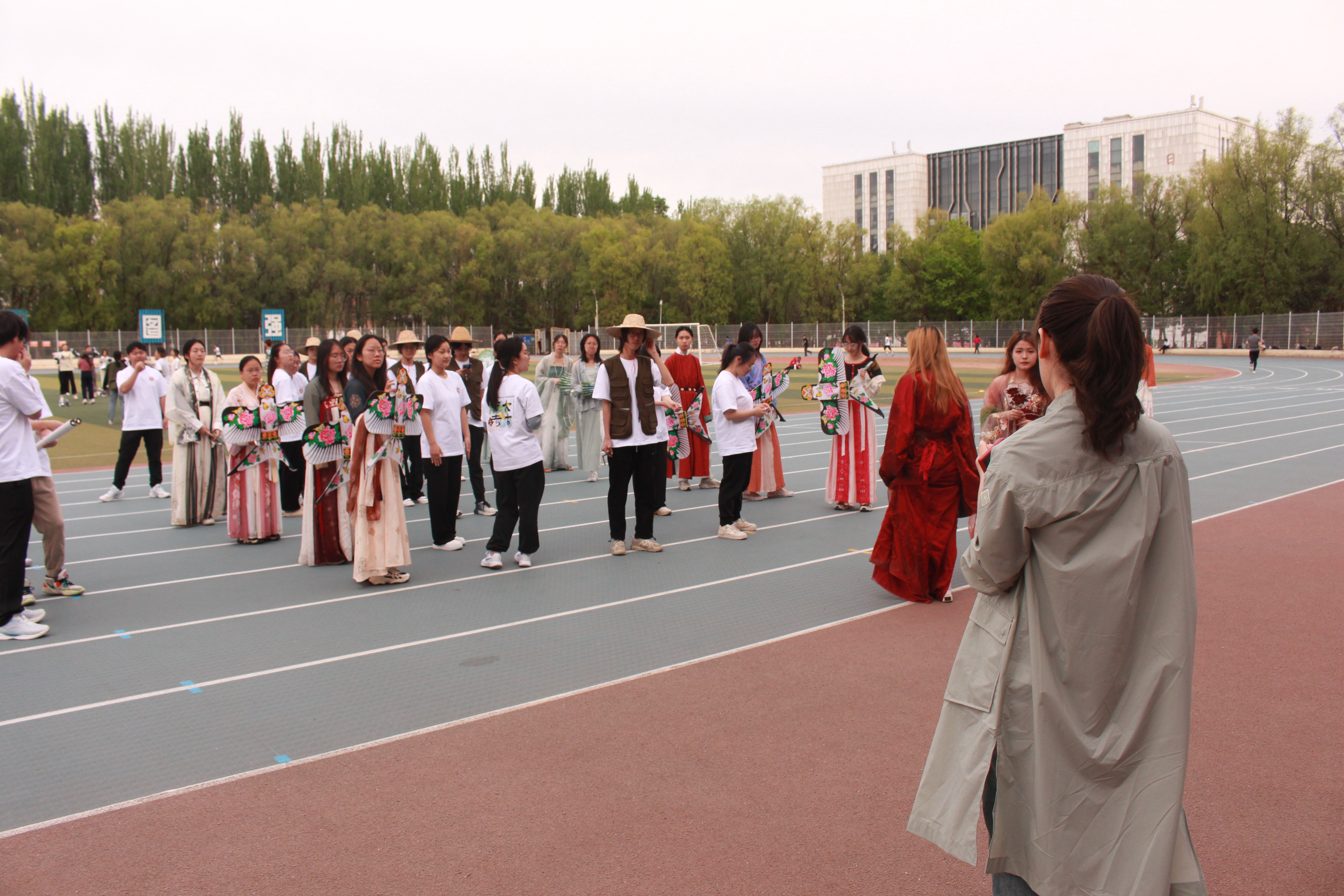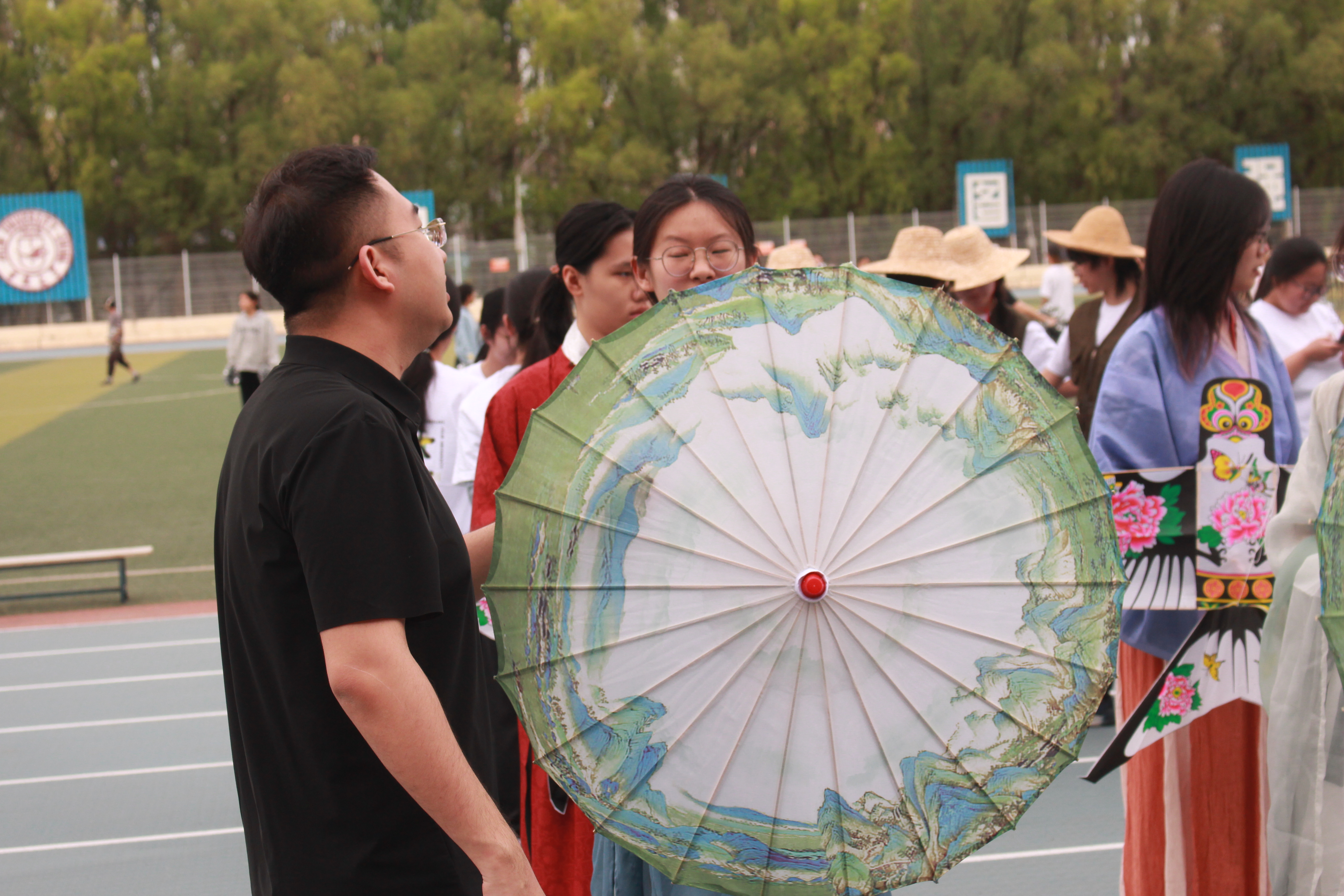 身著漢服的同學(xué)不斷調(diào)整紙傘與紙鳶的展示方式,以期呈現(xiàn)更好的視覺效果。模擬發(fā)掘的同學(xué)精益求精,修改動作錯誤,展現(xiàn)考古學(xué)人求實求真的嚴(yán)謹(jǐn)態(tài)度。
