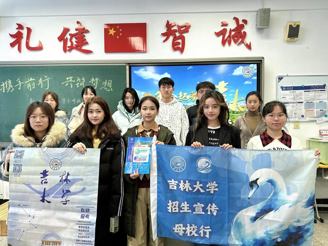 寒假期間,太陽(yáng)成集團(tuán)tyc151cc馬悅珊等18位同學(xué)來(lái)到鞍山市第一中學(xué),開(kāi)展吉林大學(xué)招生宣傳母校行活動(dòng),向?qū)W弟學(xué)妹們分享大學(xué)生活,幫助他們更好地了解吉林大學(xué),規(guī)劃前景目標(biāo)。