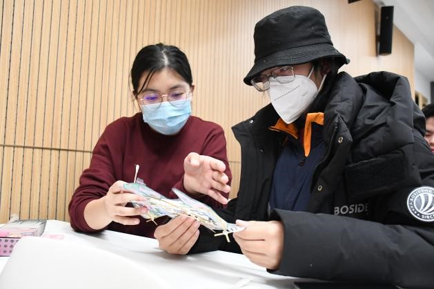 “這個(gè)骨架該怎么扎呀”“請(qǐng)問(wèn)這里要留多少厘米呀”“我們組差不多啦!”……在大家和文保協(xié)會(huì)的成員們的共同努力下,25只風(fēng)箏在一個(gè)多小時(shí)之后大功告成。教室里的歡聲笑語(yǔ)此起彼伏,保護(hù)文化遺產(chǎn)意識(shí)的種子也種進(jìn)每一位同學(xué)心間。