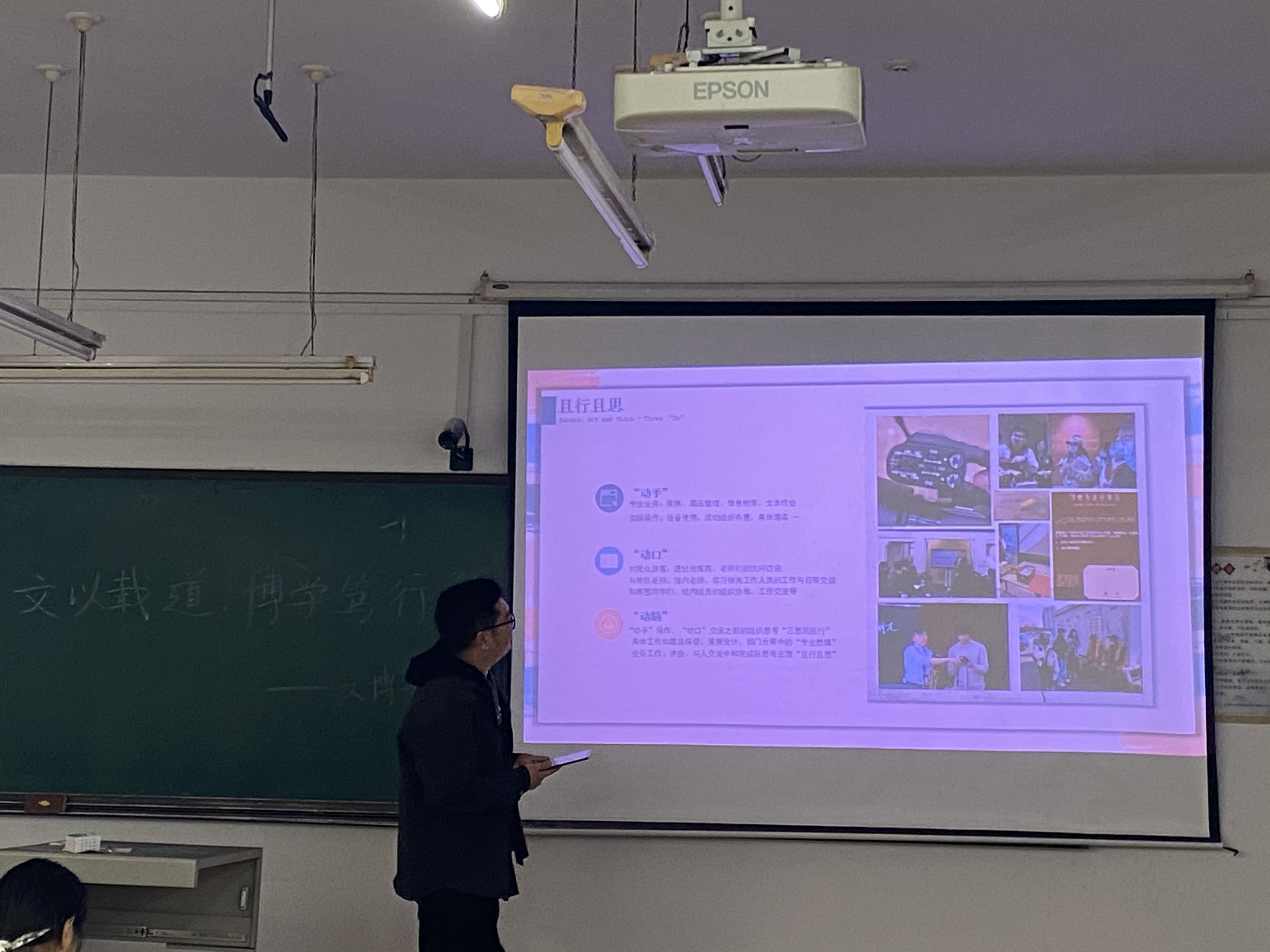 于平宗同學(xué)首先介紹了實習概況,然后以三個“動”(動手、動口、動腦)和三個“能”(專業(yè)實踐、與人溝通、思維學(xué)識)概括了自己的實習心得,最后分享了自己的建議,并表達了對師弟師妹們在實習中能夠收獲和成長的期望。