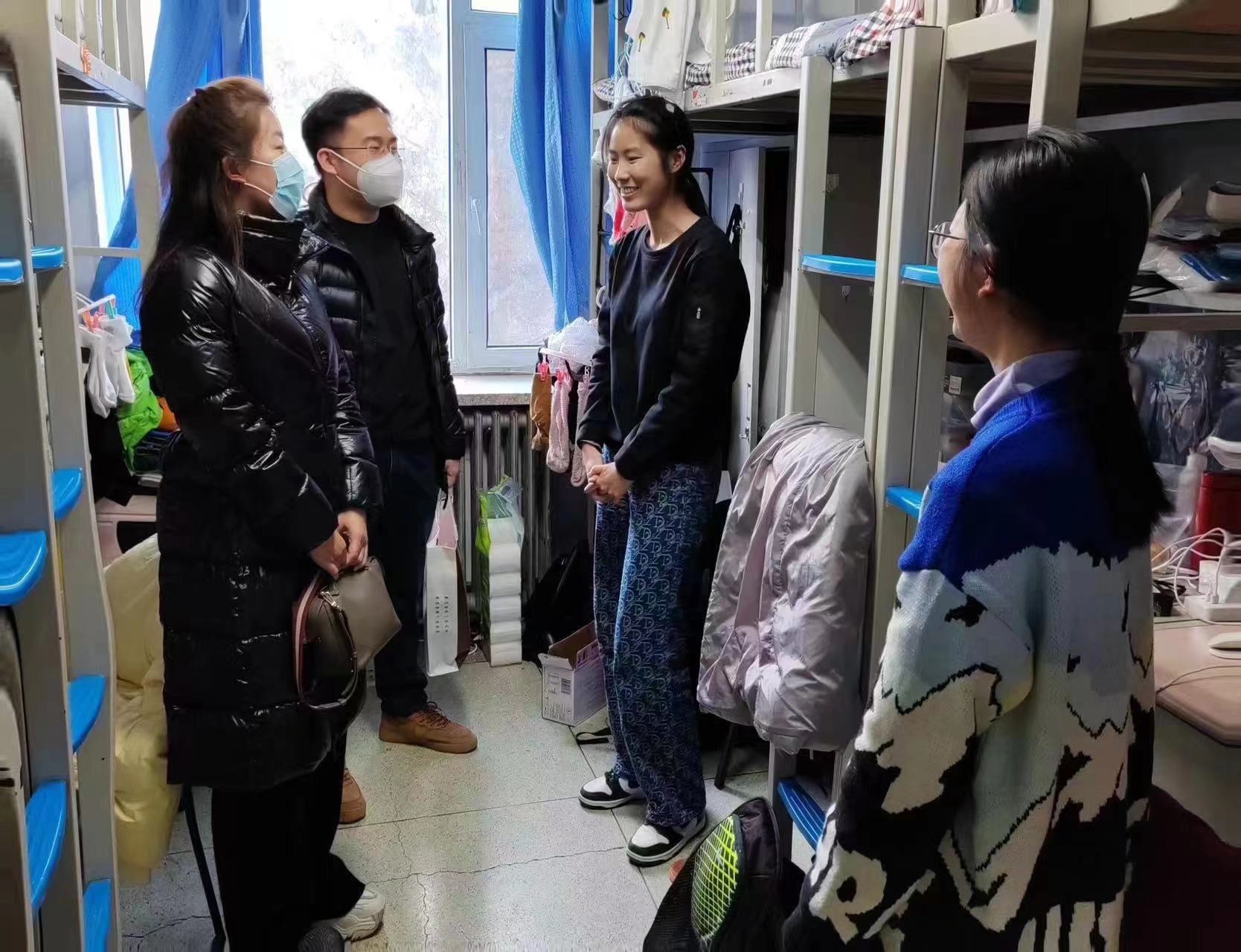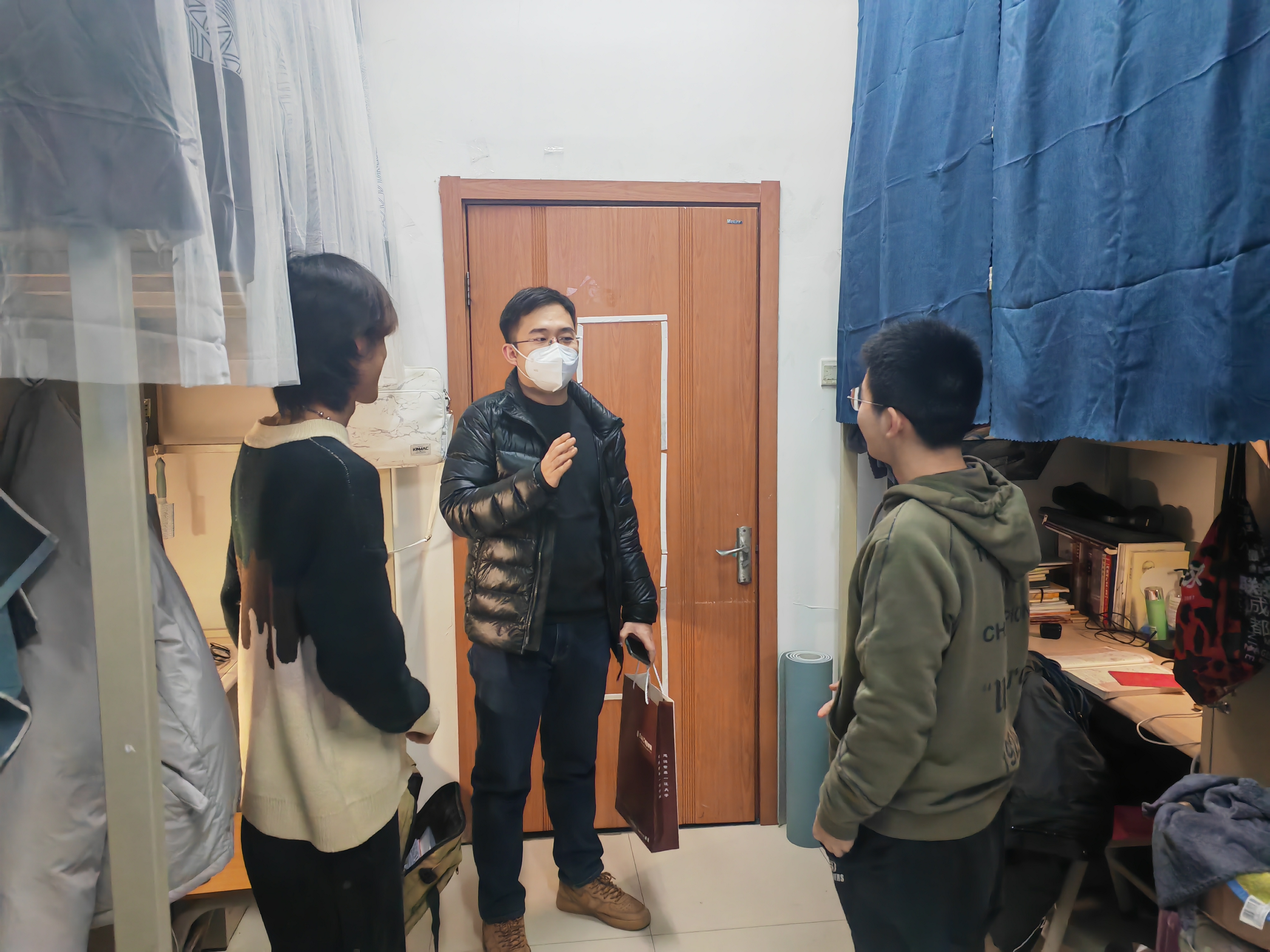 為深入了解為了解我院學生住宿和生活情況,進一步關注同學們的身心健康,掌握學生思想動態(tài),2023年2月24日下午,太陽成集團tyc151cc學生工作辦公室主任楊晨、輔導員馬嘉男、邱澤涵來到學生宿舍,探望全體本科同學。