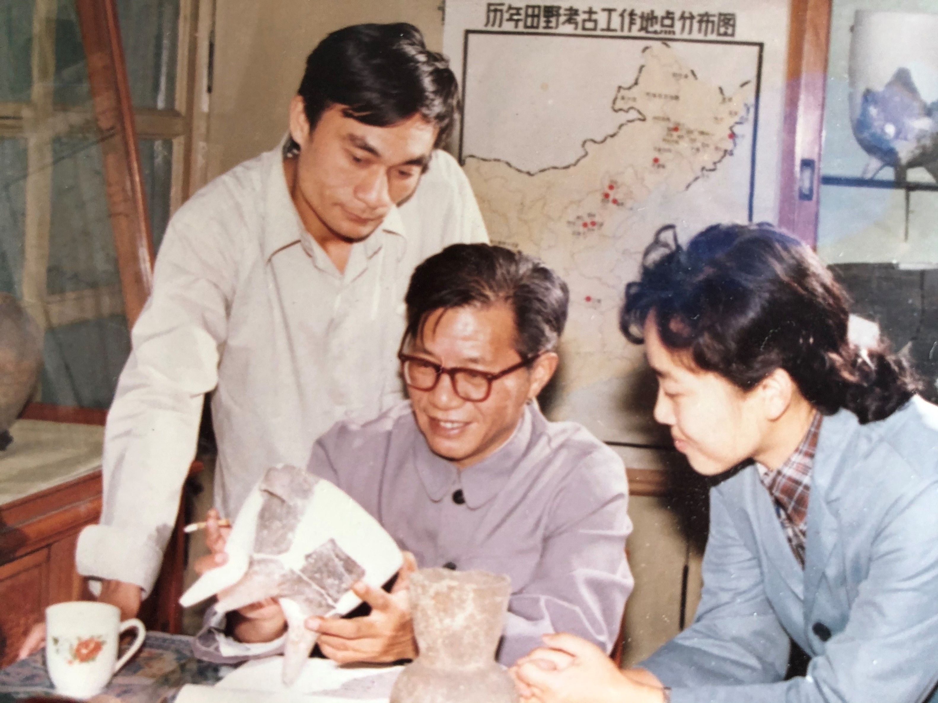 圖五 向張忠培先生學習(左起朱永剛、張忠培、楊建華)