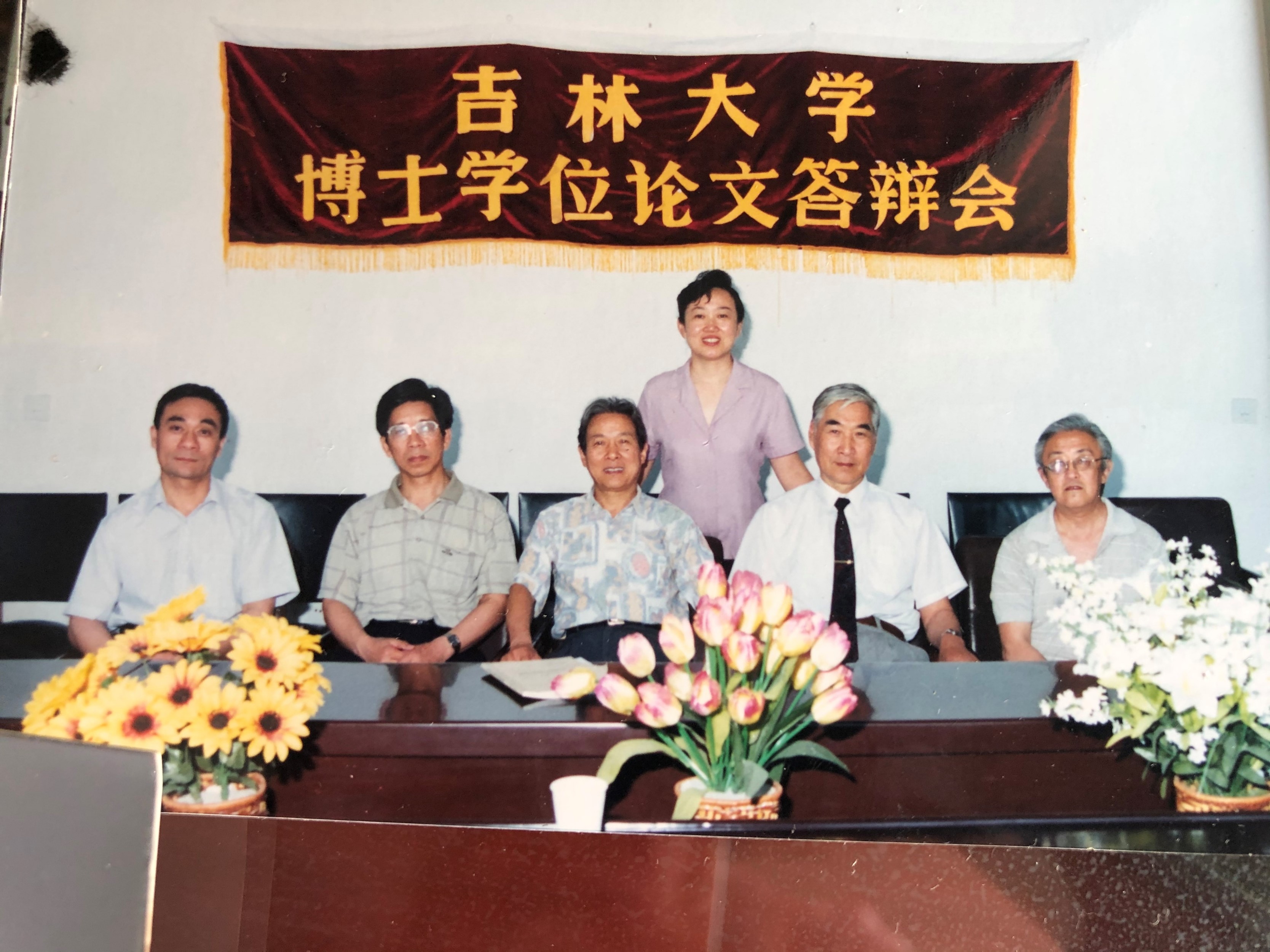 圖九 博士論文答辯合影(坐者左起朱永剛、魏存成、李伯謙、方起東、林沄)