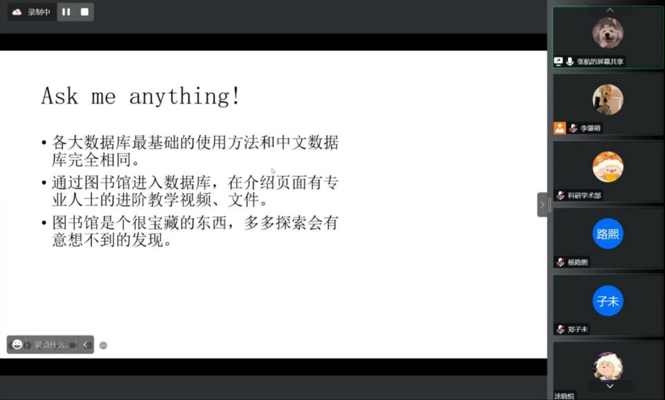 分享結(jié)束后,兩位主講人對同學(xué)們的疑惑一一進(jìn)行了解答。晚8時許,本次文獻(xiàn)檢索講座圓滿結(jié)束。