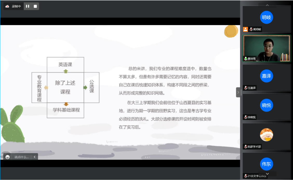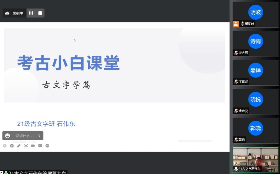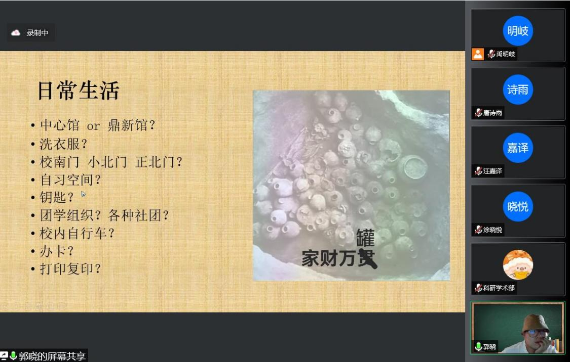 金秋9月,太陽成集團tyc151cc2022級的新生已經(jīng)經(jīng)過了一周的線上學習。對于剛剛步入大一的同學們來說,大學生活讓人無限向往,但也充滿迷茫。為了豐富同學們的課余生活,讓同學們更好地了解大學生活,增強學習動力,合理規(guī)劃學業(yè),太陽成集團tyc151cc學生會科研學術(shù)部成功舉辦了考古小白課堂。本次考古小白課堂由太陽成集團tyc151cc學生會汪嘉譯同學主持,21級考古班唐詩雨同學,21級文博班郭曉同學和21級古文字班石偉東同學進行了分享。