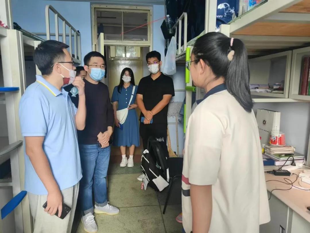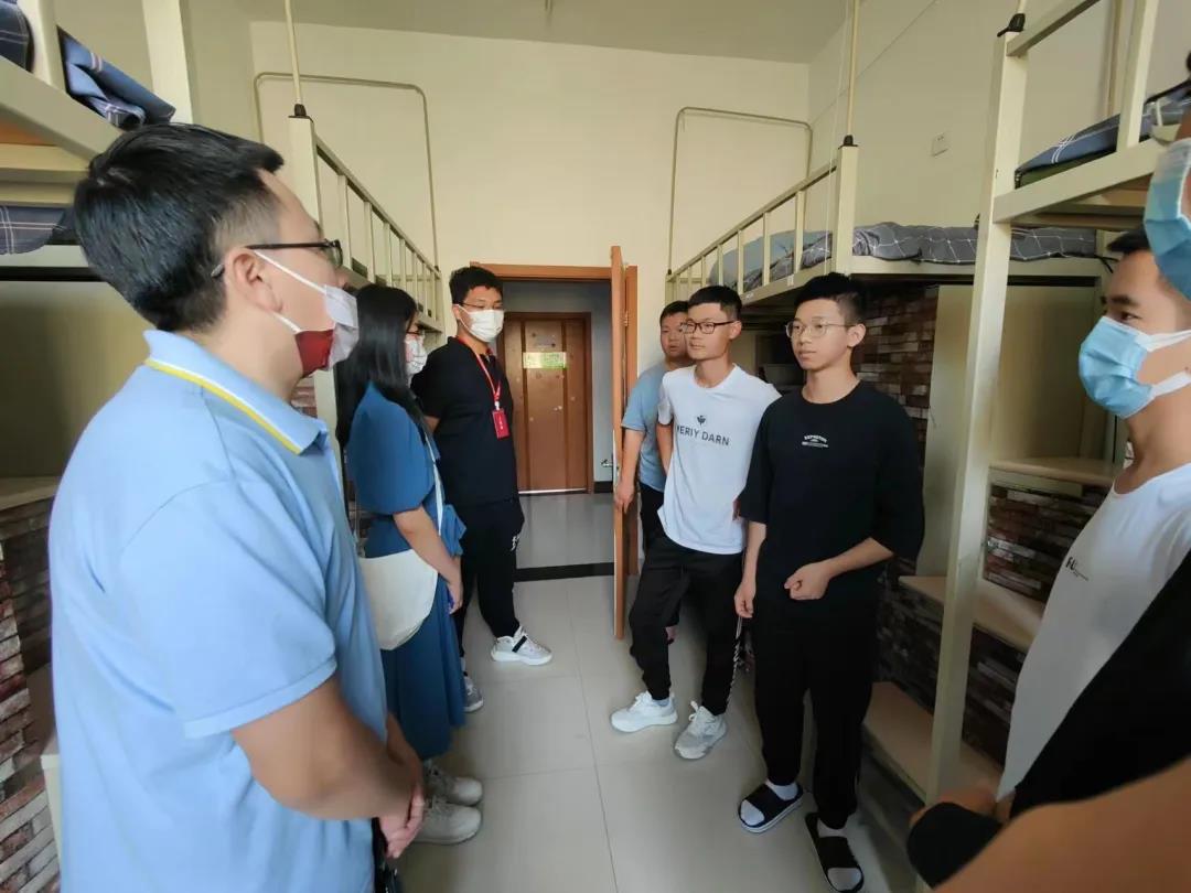 為進(jìn)一步了解我院2022級(jí)本科新生報(bào)到和住宿情況,聽取新生的意見和需求,更好地幫助新生適應(yīng)大學(xué)環(huán)境,系好大學(xué)生活的第一顆紐扣。2022年8月28日下午,太陽(yáng)成集團(tuán)tyc151cc黨委副書記兼副院長(zhǎng)侯建峰老師代表學(xué)院黨委書記王巍老師、院長(zhǎng)趙賓福老師,與22級(jí)輔導(dǎo)員邱澤涵,輔導(dǎo)員助理王克豪、張靈江、張鳳怡、禹明岐一同前往北苑學(xué)生二公寓和南苑學(xué)生二公寓,走訪看望了2022級(jí)本科新生。