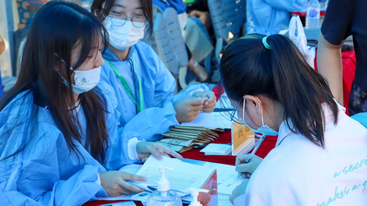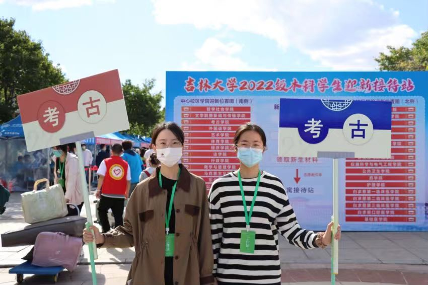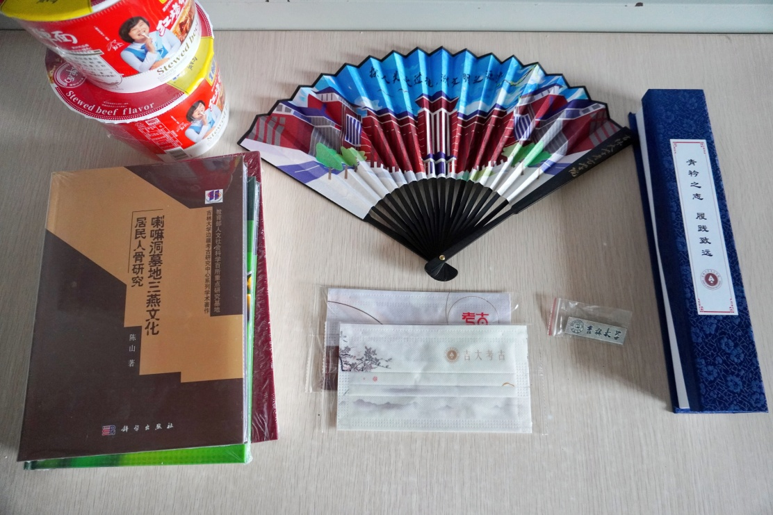 在迎新正式開始之前,學院為22級考古新生們準備好了“迎新禮包”。為配合疫情防控,也為大家減輕行李負擔,專業(yè)類禮品書籍提前放在了學生寢室的桌子上,等待各位小主人親自揭曉。定制的精美折扇,吉大考古文創(chuàng)口罩,則是在迎新現(xiàn)場親手交給新同學們。
