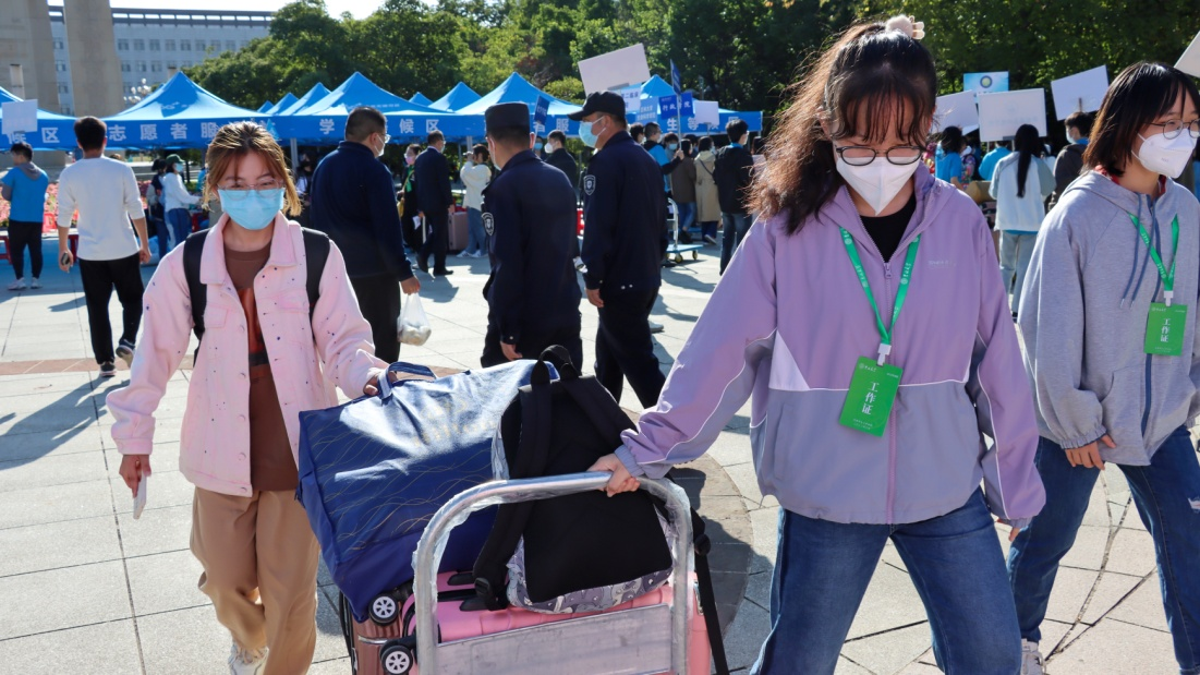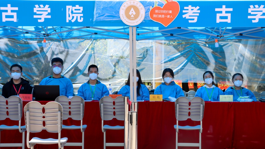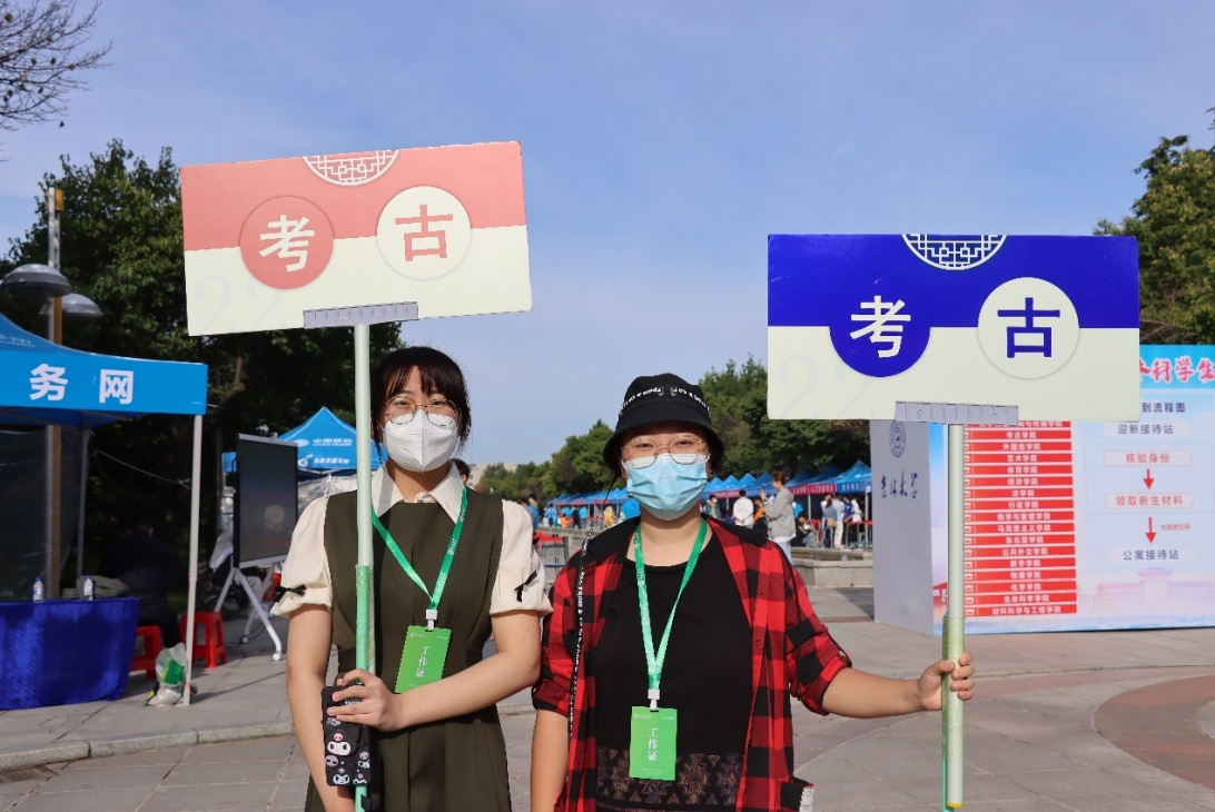 本次迎新分為三個陣地,迎新志愿者們分頭行動又配合密切。第一陣地為廣場引導,迎新志愿者們翹首以盼,手持醒目的“考古”字樣的標牌,為初入校園的考古新生們提供直接引領(lǐng),引領(lǐng)他們到接待站進行報到。第二站是迎新接待站,四位輔導員助理協(xié)同輔導員邱澤涵老師,為新生的報到保駕護航。核驗信息、檢查檔案,發(fā)放寢室鑰匙、校園一卡通和防疫物資,一套流程一氣呵成,工作有條不紊。老師同學們細致認真,耐心引導,給新生們留下良好的印象,感受到如家一般溫暖的迎接。第三陣地是行李搬運。志愿者們積極熱心,引領(lǐng)師弟師妹們抵達寢室并幫助他們運送行李。一路上也會和師弟師妹們介紹一下他們眼中尚是陌生的校園。