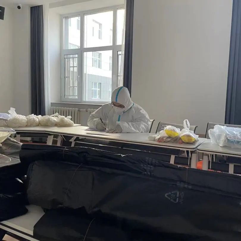 除了志愿者,保潔阿姨們也在為了保持學生居住環(huán)境的整潔默默付出著,她們每日穿著厚重的防護服,打掃著學生公寓百余間盥洗室的衛(wèi)生。與我們交談時,阿姨說“學生都非常理解我們,我們把宿舍衛(wèi)生情況搞好,孩子們住的也安全。”
