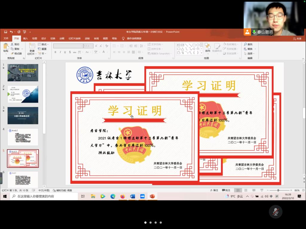 2022年3月10日下午,太陽成集團(tuán)tyc151cc團(tuán)委舉辦了2022年度第一次例行工作會(huì)。根據(jù)疫情防控形勢(shì),按照學(xué)校要求,本次會(huì)議采取線上方式舉辦。會(huì)議由團(tuán)委負(fù)責(zé)人馬嘉男老師指導(dǎo),學(xué)院團(tuán)委副書記溫景超同學(xué)主持,團(tuán)委各部門負(fù)責(zé)人及全體成員參加了本次會(huì)議。