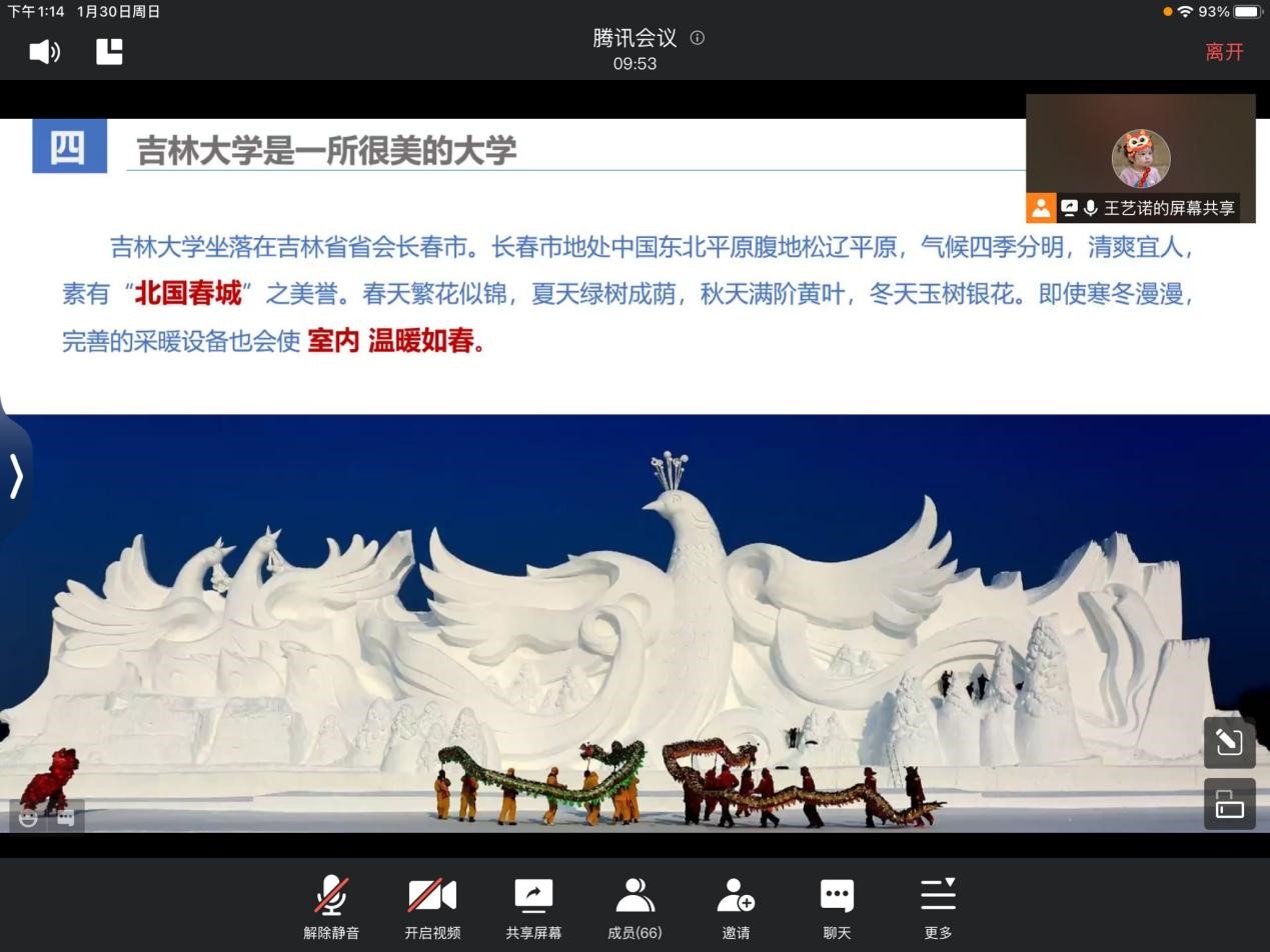 2022年1月30日下午,李逸然同學所在的招生宣講團隊在母校延邊第二中學正式開始了招生宣講。由于疫情管控要求,團隊通過騰訊會議舉辦了線上宣講。隊長王藝諾同學主持了本次宣講會,其他團隊成員作為與談嘉賓,對主講內(nèi)容進行補充。宣講會主要分為兩大部分,第一部分為校情陳述,由主持人借助學校的招生視頻等資料,從學科實力、校園環(huán)境到衣食住行,對吉林大學進行全面介紹。第二部分為問答環(huán)節(jié),由隊員根據(jù)高中學弟學妹們的提問,尤其是學科專業(yè)等問題,做出深入細致的講解。在這一環(huán)節(jié),學弟學妹們熱情高漲,提出的問題包含學習生活、日常生活等多個方面,李逸然同學結(jié)合了自身經(jīng)歷,從多個角度為同學們講解豐富多彩的大學生活。會議結(jié)束后,實踐團隊和母校同學建立了招生宣講的長效溝通機制,隨時幫助學弟學妹答疑解惑,以便持續(xù)擴大學校招生影響力。