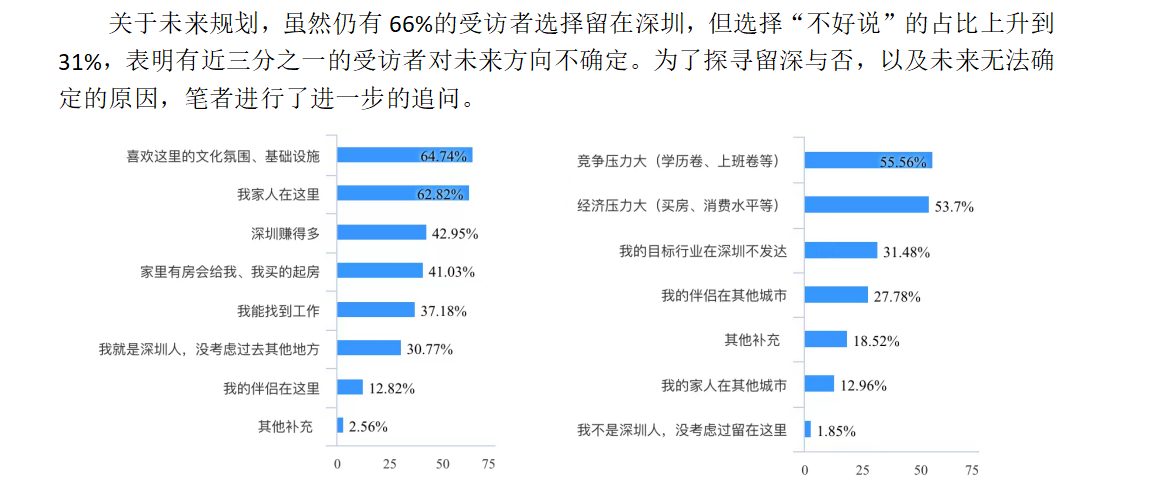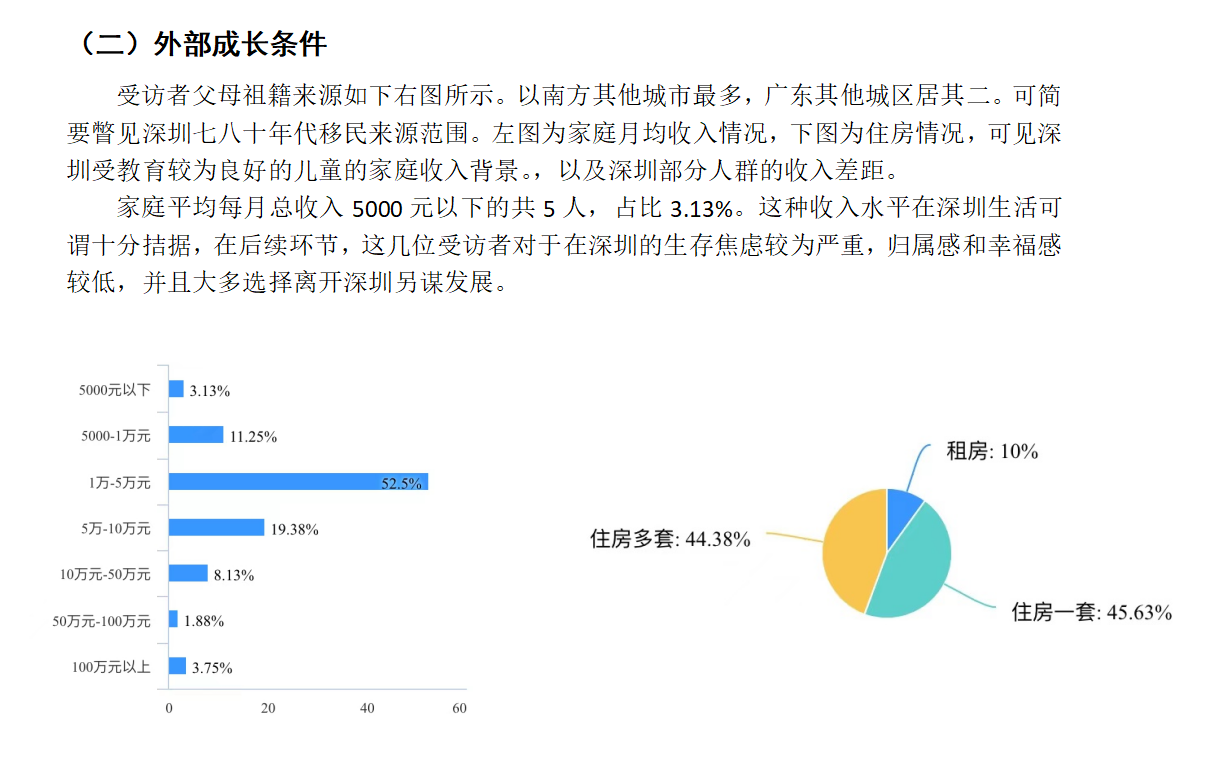 這份調(diào)查報(bào)告讓黎宇菲更深入地了解了她的“深圳歸屬感”的來源,也讓她意識(shí)到她的生存焦慮不僅僅是個(gè)體原因。最終,黎宇菲同學(xué)將這項(xiàng)調(diào)查發(fā)布在了網(wǎng)絡(luò)上,也使更多人對(duì)深圳及深圳人的特質(zhì)有了更深入的理解。