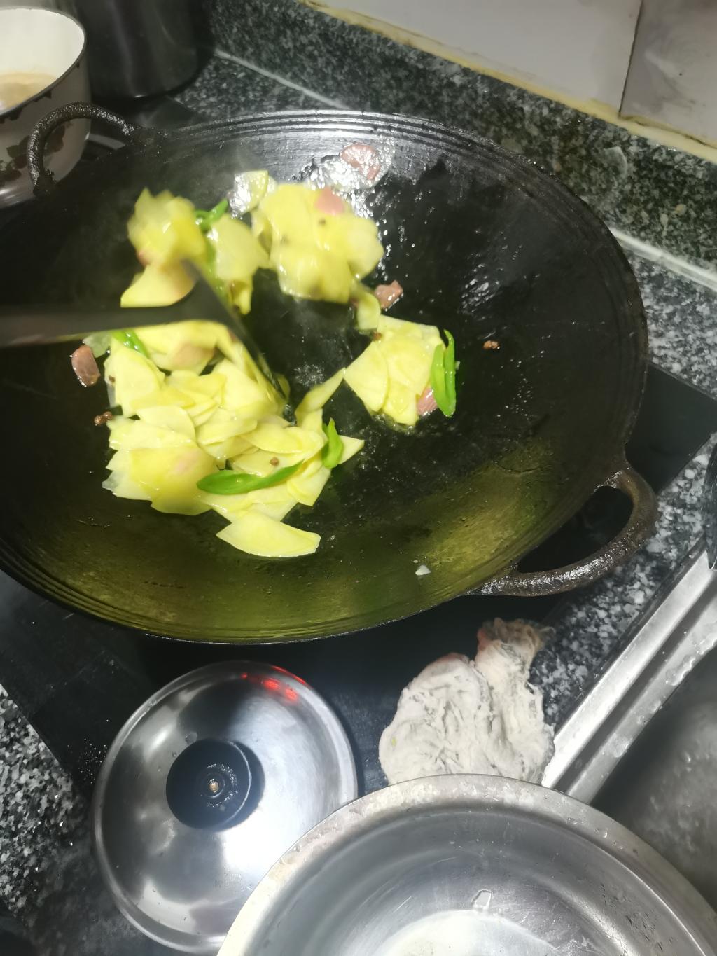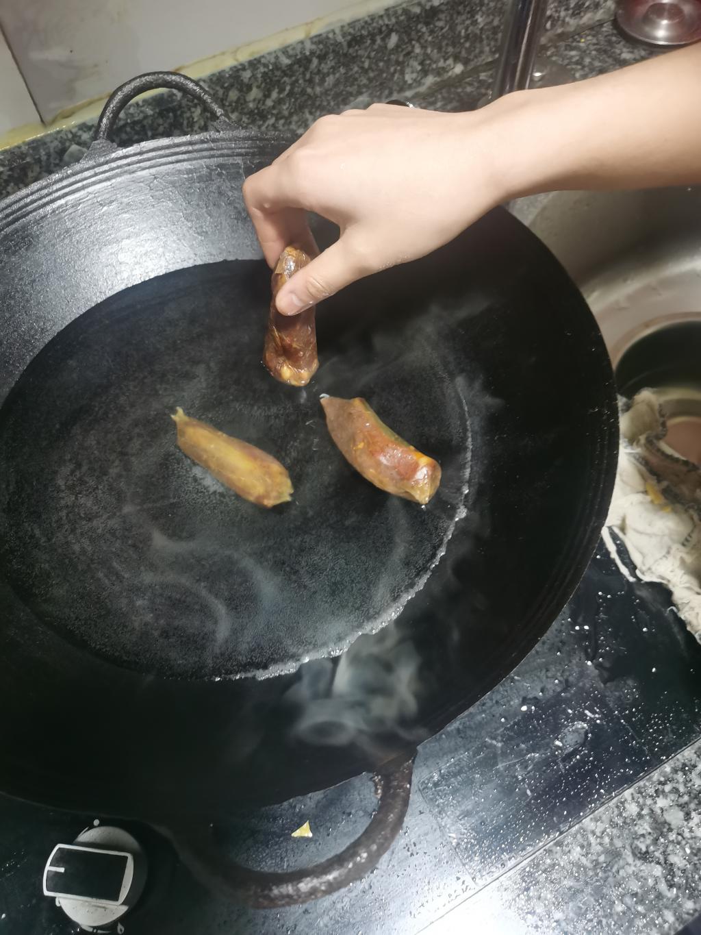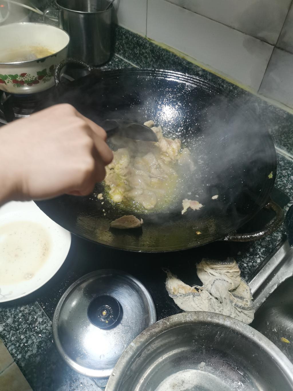 酸蘿卜炒肉——將肉、青椒、酸蘿卜切片,依次倒入于滾燙油鍋中爆炒,加入花椒、鹽、味精,翻炒待其入味后倒入盤中,撒上大蔥,制成!