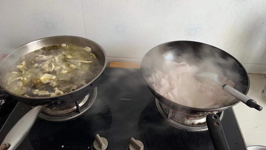 以下是柴光進(jìn)分享的酸菜白肉的備菜、下鍋的過程——采用新鮮五花肉和煸炒過的酸菜放入砂鍋慢燉,料酒生抽蠔油依次放入——就能得到一份用心制作的酸菜白肉:豬肉肥而不膩,酸菜入味兒可口。