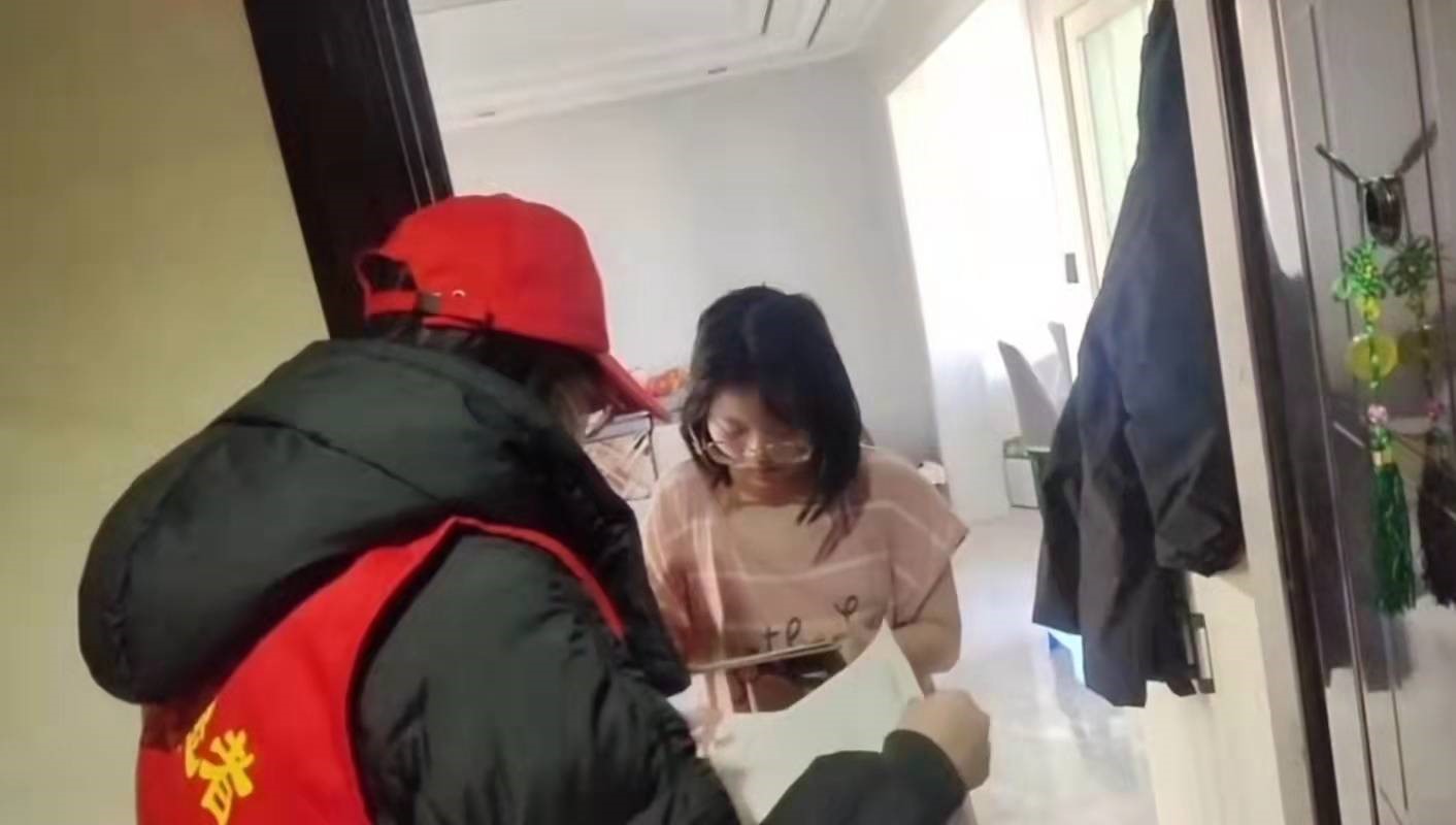 首先趙夢竹跟隨社區(qū)工作人員進(jìn)入小區(qū)進(jìn)行入戶排查,詢問家中是否有外來人員、是否出現(xiàn)發(fā)熱癥狀,對每一戶的基本信息進(jìn)行登記備案,同時也向居民宣傳普及疫情防控知識,推動全民疫苗接種。在排查過程中,社區(qū)干部和小區(qū)管理人員向包括趙夢竹在內(nèi)的志愿者團(tuán)隊(duì)介紹了小區(qū)的一些基本情況,使趙夢竹從社區(qū)的大事小情中感受到了鄰里和諧和團(tuán)結(jié)一心奮戰(zhàn)疫情的力量。
