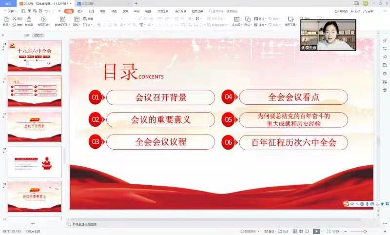 宣講活動(dòng)開(kāi)始前,李玉婷所在的實(shí)踐活動(dòng)小組,召開(kāi)了多次小組會(huì)進(jìn)行了充分的討論,確立了宣講主題和內(nèi)容安排。隨后的時(shí)間,大家認(rèn)真搜集相關(guān)資料,了解相關(guān)內(nèi)容,作了詳盡的準(zhǔn)備。宣講會(huì)面向高中學(xué)生,采取騰訊會(huì)議的形式開(kāi)展了線上宣講。小組成員按照內(nèi)容分工依次介紹了十九屆六中全會(huì)會(huì)議的召開(kāi)背景、會(huì)議看點(diǎn)、重要意義,百年來(lái)黨帶領(lǐng)人民取得的重大成就和歷史經(jīng)驗(yàn)及百年征程中歷次的六中全會(huì)。在主旨報(bào)告結(jié)束后,小組成員與聽(tīng)眾進(jìn)行了互動(dòng)交流,圍繞黨的奮斗歷史進(jìn)行了開(kāi)放式交流。大家都充分認(rèn)識(shí)到擺在我們面前最重要的政治任務(wù),就是認(rèn)真學(xué)習(xí)貫徹黨的十九屆六中全會(huì)精神,進(jìn)一步統(tǒng)一思想、統(tǒng)一意志、統(tǒng)一行動(dòng),自己應(yīng)當(dāng)立足本業(yè),努力學(xué)習(xí)知識(shí),以待將來(lái)奉獻(xiàn)社會(huì)。
