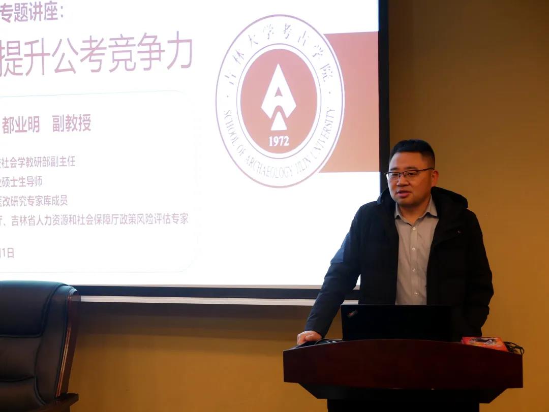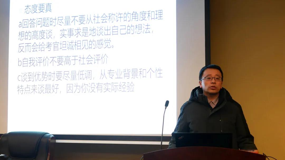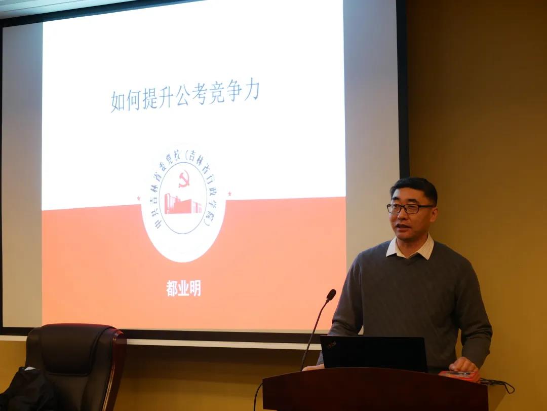 ????2021年12月1日,太陽(yáng)成集團(tuán)tyc151cc邀請(qǐng)吉林省委黨校社會(huì)學(xué)教研部副主任、社會(huì)工作專業(yè)碩士生導(dǎo)師、吉林省深化醫(yī)改研究專家?guī)斐蓡T、吉林省民政廳、吉林省人力資源和社會(huì)保障廳政策風(fēng)險(xiǎn)評(píng)估專家都業(yè)明副教授,在匡亞明樓第一報(bào)告廳為研究生進(jìn)行“如何提升公考競(jìng)爭(zhēng)力”的就業(yè)指導(dǎo)專題講座。