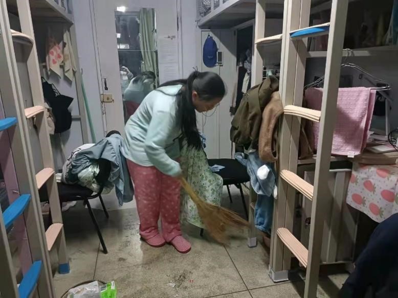 在活動(dòng)通知發(fā)布后,同學(xué)們以極大的熱情積極投身于寢室衛(wèi)生的清掃活動(dòng)中,紛紛拿起身邊的抹布、掃把等工具,對(duì)寢室進(jìn)行了徹底的清潔工作。各年級(jí)同學(xué)各顯其能,以集體的智慧和勞動(dòng)打造了一個(gè)個(gè)干凈明亮、溫馨整潔的寢室。盡管2018級(jí)的同學(xué)正面臨考研與就業(yè)的壓力,但也積極參與其中,對(duì)寢室環(huán)境進(jìn)行了徹底清掃,對(duì)個(gè)人物品進(jìn)行了歸置。2020級(jí)的同學(xué)同樣以飽滿的熱情投入到寢室勞動(dòng)活動(dòng)中,不僅對(duì)整體衛(wèi)生環(huán)境做了清潔,而且對(duì)自己的書桌進(jìn)行了裝飾,展現(xiàn)了自己的創(chuàng)意。值得關(guān)注的是,2021級(jí)新生同學(xué)雖然仍處在緊張勞累的軍訓(xùn)之中,但大家仍然積極利用閑暇時(shí)間整理內(nèi)務(wù),打掃衛(wèi)生。參與寢室勞動(dòng)主題教育的同學(xué)樂在其中,不時(shí)能在水房看到倒垃圾涮拖布的同學(xué),走寢的時(shí)候也會(huì)看到同學(xué)在積極歸納個(gè)人物品。大家的書桌整潔有序,書籍排列整齊,被子總是工整的疊到床腳。除了經(jīng)常打掃的地板,更對(duì)寢室門、窗戶、窗臺(tái)以及各自的組合柜進(jìn)行了深度清掃。