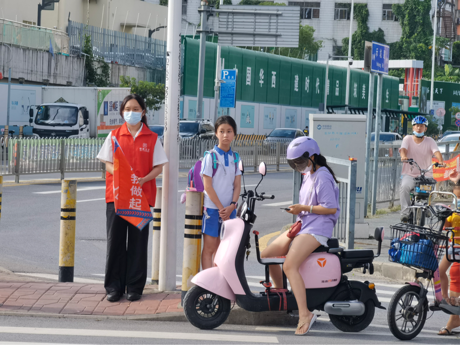 活動(dòng)伊始,黎宇菲同學(xué)與社區(qū)工作人員取得了聯(lián)系,在工作人員的介紹下認(rèn)真學(xué)習(xí)了交通指揮的基本知識(shí),熟悉了醫(yī)院路口人流車(chē)流疏導(dǎo)的各項(xiàng)流程與規(guī)章制度,為接下來(lái)的工作做了充足的準(zhǔn)備。隨后,黎宇菲同學(xué)在做好個(gè)人防護(hù)工作的前提下,開(kāi)始了疏導(dǎo)醫(yī)院路口人流車(chē)流的工作。雖然絕大多數(shù)人都能理解并配合志愿者的指揮工作,但也存在一些人不理會(huì)義工善意提醒而橫穿馬路、闖紅燈、拒絕佩戴頭盔的現(xiàn)象。這種漠視生命安全的行為讓黎宇菲同學(xué)產(chǎn)生了困惑,因?yàn)檫`反交通規(guī)則不僅是對(duì)自己生命的不負(fù)責(zé),更是對(duì)他人生命和對(duì)社會(huì)的不負(fù)責(zé)。由此她深切地感受到盡管當(dāng)前我們的物質(zhì)生活水平已經(jīng)獲得了很大提升,但公民素養(yǎng)仍有待提高,交通安全意識(shí)有待加強(qiáng)。與此同時(shí),為期三天的交通指揮志愿工作也讓她體驗(yàn)到了交警、輔警的艱辛與勞苦。可以想象,一年365天不單要面臨嚴(yán)寒酷暑,風(fēng)霜雨雪,可能還會(huì)面臨很多的誤會(huì)和非議。她由衷地對(duì)這項(xiàng)事業(yè)充滿了敬意。