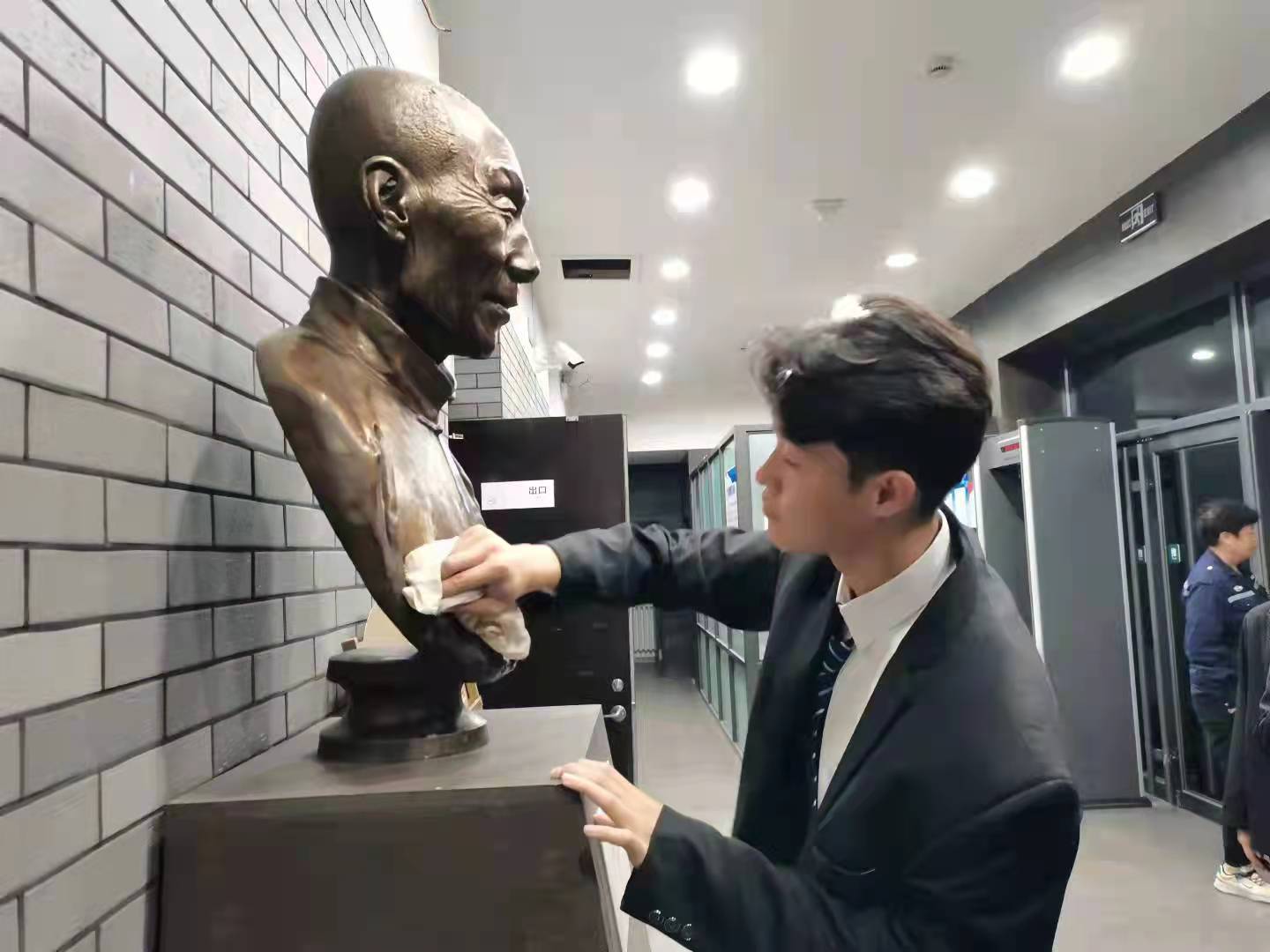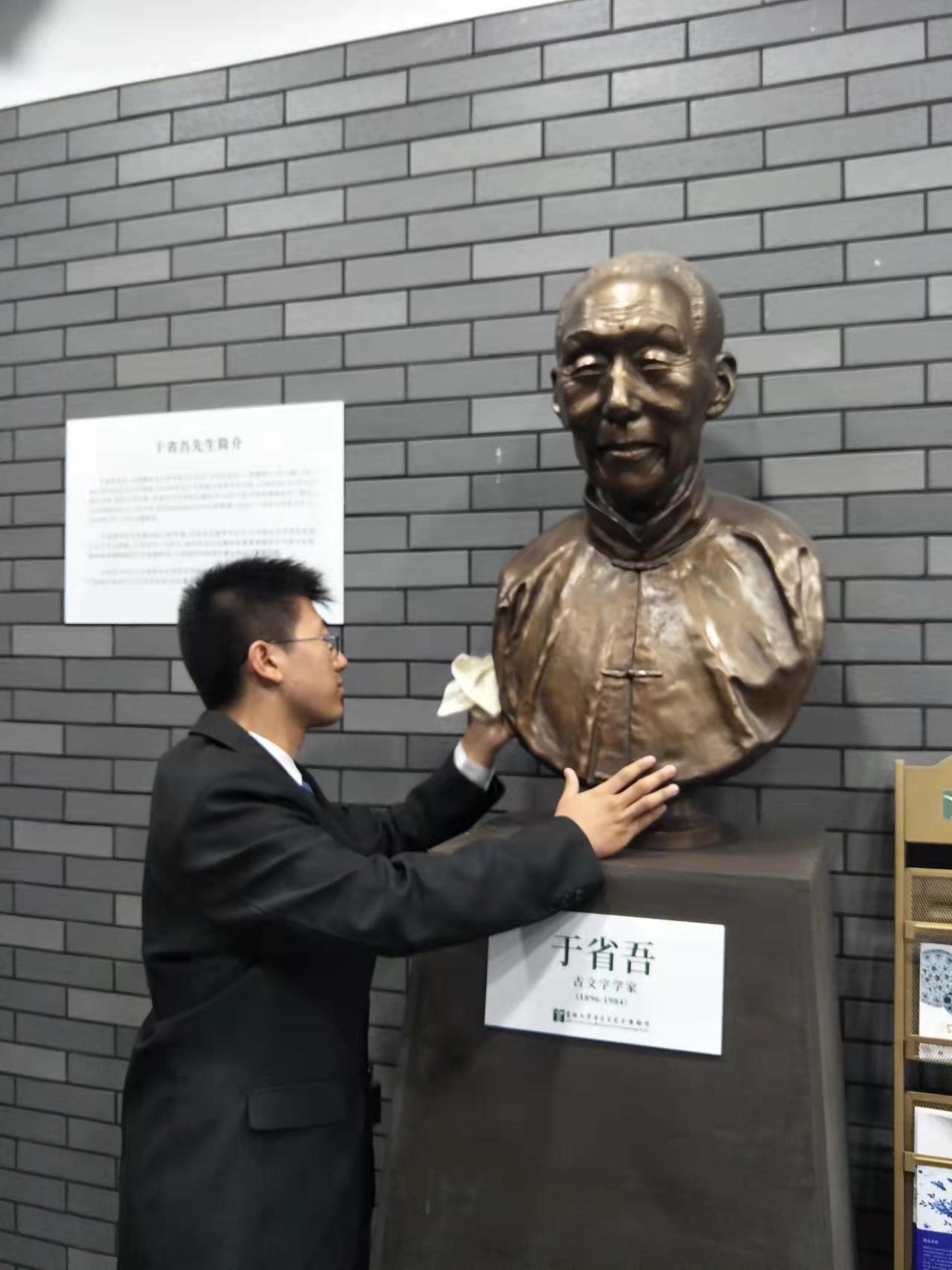 上午10時(shí),各位學(xué)生代表懷著無比崇敬的心情來到考古與藝術(shù)博物館,聚集在吉大先賢于省吾先生的雕像前,舉行莊重的祭掃雕像儀式。首先,張馨予同學(xué)代表學(xué)生發(fā)言,認(rèn)真梳理了吉大的優(yōu)秀文化基因和思想精華,深切追思于省吾先生在中國古文字、古器物研究和古籍整理研究領(lǐng)域的卓越成就與偉大貢獻(xiàn),并自勉繼承先賢遺志,發(fā)揚(yáng)先賢精神。隨后,同學(xué)們自發(fā)而有序地清掃了于省吾先生的雕像,用實(shí)際行動(dòng)表達(dá)了自己的崇敬與緬懷之情。最后,學(xué)生代表果香凝同學(xué)向于省吾先生的雕像敬獻(xiàn)花束,全體同學(xué)鞠躬并肅立默哀,表達(dá)對先賢的無盡敬仰與深切追思之情。
