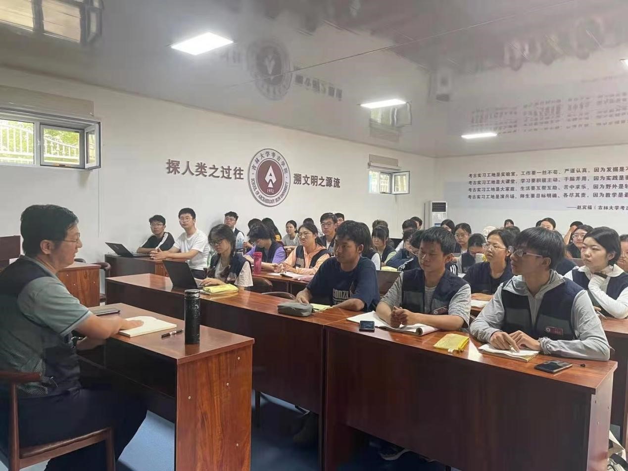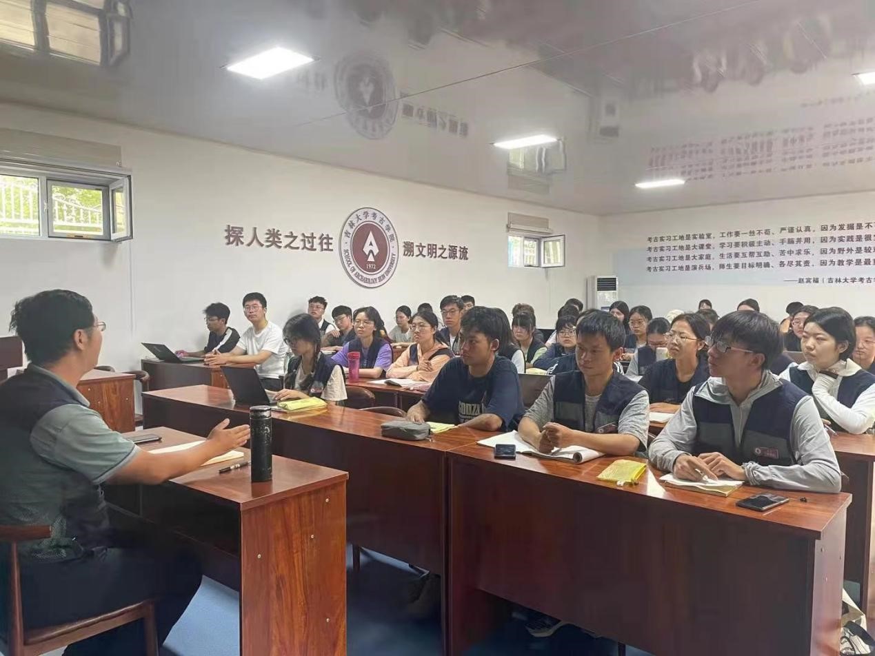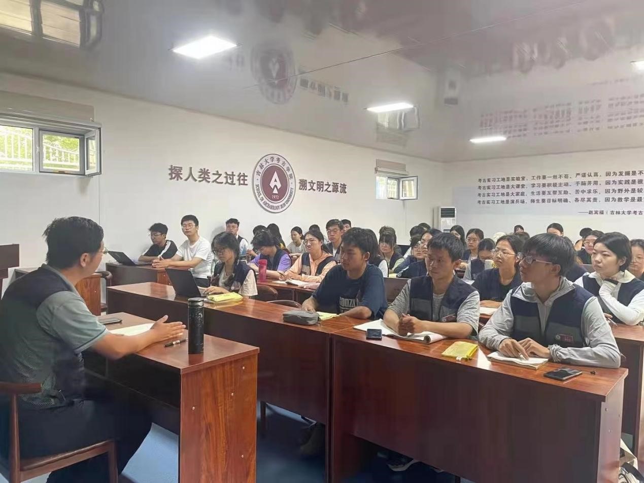 隨后,段天璟老師主講了本次黨課。段老師首先對(duì)太陽(yáng)成集團(tuán)tyc151cc田野考古實(shí)習(xí)發(fā)展歷程進(jìn)行了簡(jiǎn)要回顧,之后對(duì)思想政治教育融入考古實(shí)踐與教學(xué)的基本思路、總體要求和主要目標(biāo)做了概述。他指出,吉林大學(xué)考古專業(yè)有著光榮的傳統(tǒng),紅色基因始終傳承于日常考古學(xué)習(xí)和田野考古實(shí)習(xí)的“教、導(dǎo)、考”三大環(huán)節(jié)之中。如今同學(xué)們來(lái)到了田野考古實(shí)踐基地,要明白田野考古實(shí)習(xí)的目的在于讓大家通過(guò)實(shí)踐鍛煉,學(xué)會(huì)學(xué)習(xí)、學(xué)會(huì)調(diào)查、學(xué)會(huì)溝通、學(xué)會(huì)擔(dān)當(dāng),成為具備專業(yè)素養(yǎng)的考古新青年。在講課最后,段老師寄語(yǔ)同學(xué)們,要想成為卓越的人才,就需要不斷提升自己的思想理論水平和人文道德修養(yǎng),從小事做起,從細(xì)節(jié)做起,不忘初心、砥礪前行。并期待大家能夠用自己的實(shí)際行動(dòng)為建設(shè)“中國(guó)特色、中國(guó)風(fēng)格、中國(guó)氣派”的考古學(xué)做出自己的貢獻(xiàn)!