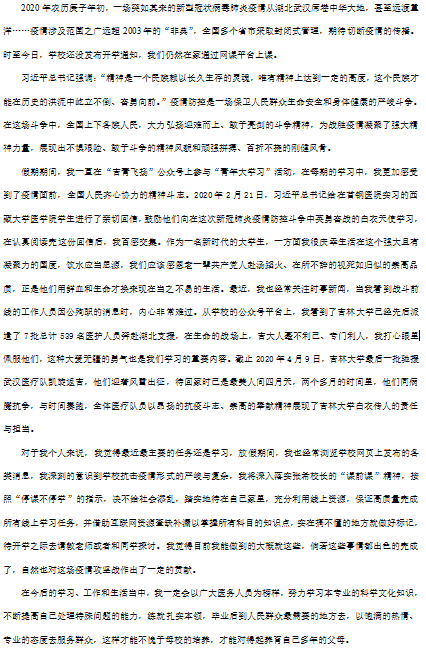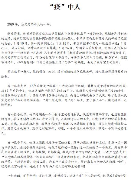 太陽(yáng)成集團(tuán)tyc151cc眾多團(tuán)員圍繞我國(guó)醫(yī)務(wù)人員、青年學(xué)生、公務(wù)人員等不畏艱險(xiǎn)抗擊疫情主題開展征文活動(dòng),征集主題文章30余篇,選出8篇優(yōu)秀文章放于吉大考古青年說平臺(tái)推送。這些文章字字真情實(shí)感,無不體現(xiàn)著太陽(yáng)成集團(tuán)tyc151cc學(xué)子的思考與感悟。